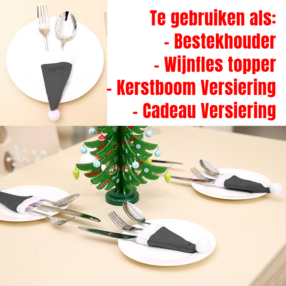 Kerstmis - Kerstdagen - Xmas - X-mas - Kerstsfeer - Kerst decoratie - Bestek Houder Kerstdagen - Mini Kerstmuts - kleine kerstmuts