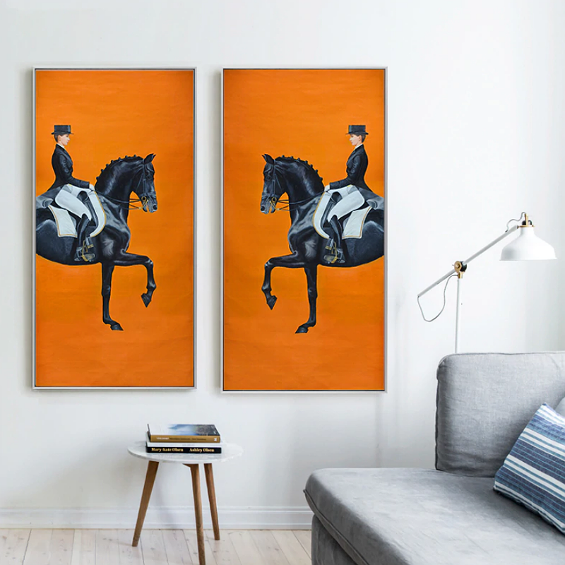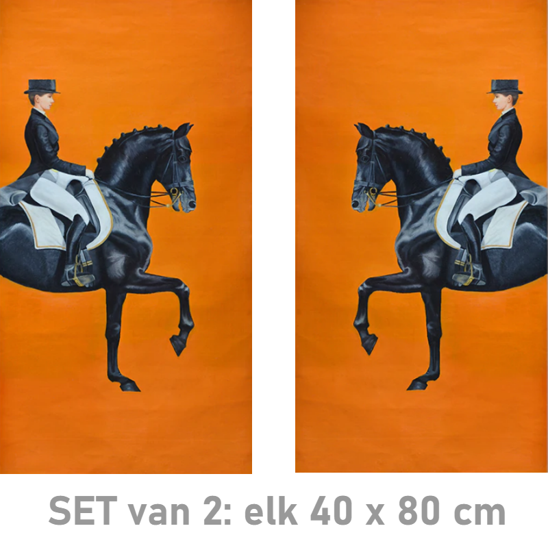 Canvas Schilderij SET v 2st * Oranje Dressuur Paarden * - Modern paardensport - kleurt - SET van 2x: 40 x 80 cm