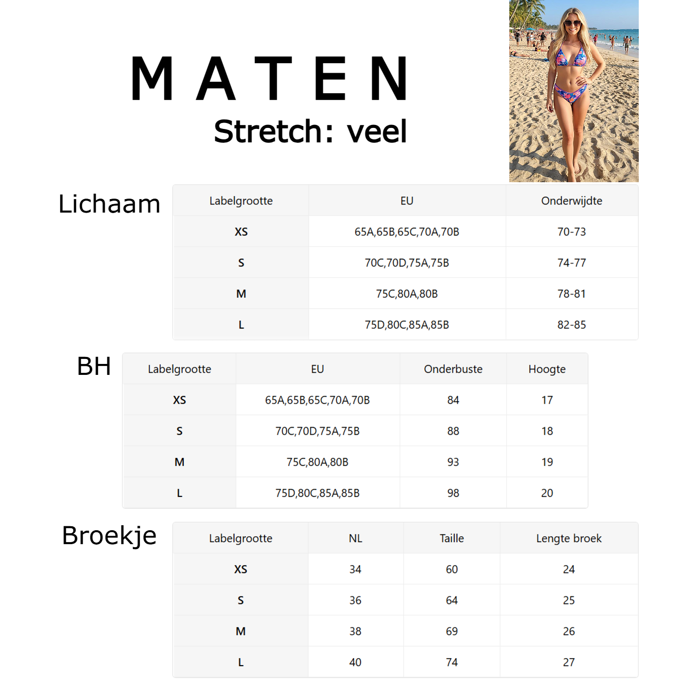 De tropische bloemenprint geeft deze tropische bikini dames een levendige en exotische uitstraling. Hierdoor is deze bloemenprint bikini dames ideaal voor vakanties en stranddagen. Of u nu ontspant aan zee of een duik neemt in het zwembad, met deze strand bikini dames straalt u stijl en zelfvertrouwen uit.