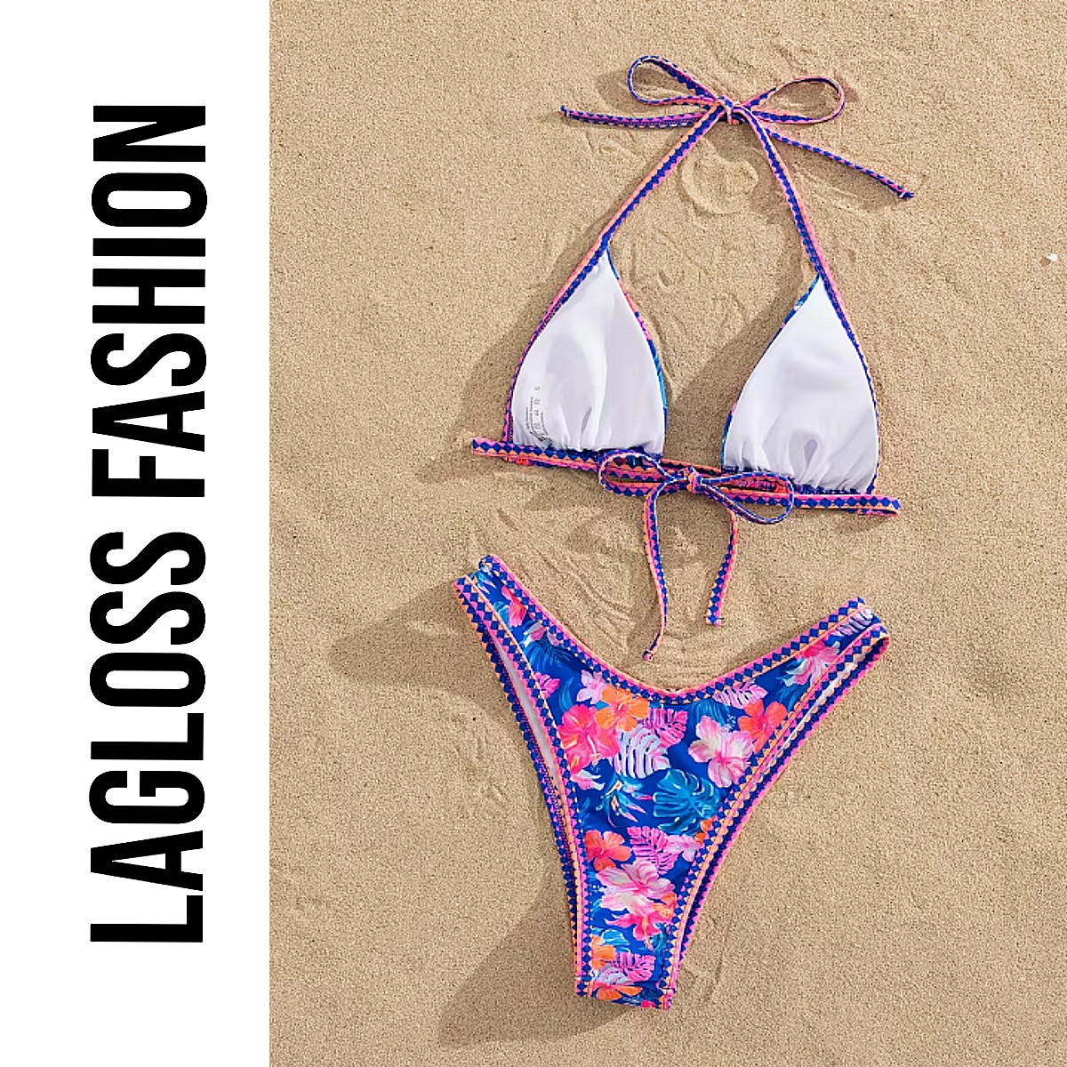 Maak uw zomerse look compleet met deze stijlvolle en sexy dames bikini met tropische bloemenprint in prachtige blauw- en rozetinten. Deze modieuze bikini is de perfecte combinatie van elegantie, comfort en een opvallende zomerse uitstraling, ideaal voor strandvakanties, zwembadmomenten en zonnige dagen.
