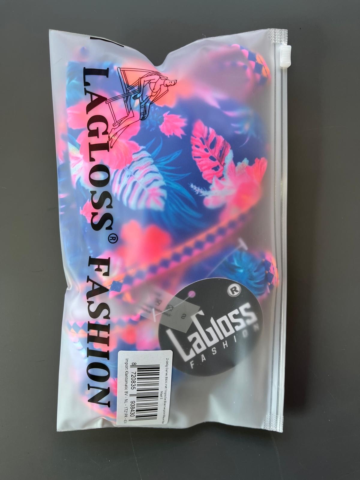 LaGloss® 2-delig Dames Bikini met Tropische Bloemenprint Blauw Roze – Zomermode – Beach Fashion – Strand – Maat S