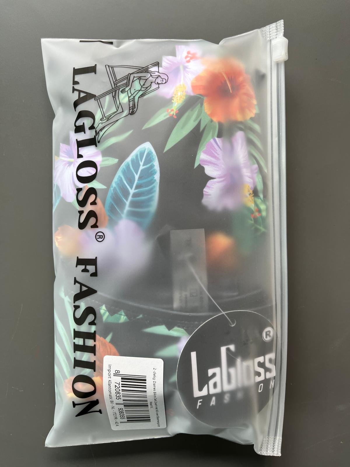 LaGloss® 2-delig Dames Bikini Set Zwart met All-over Bloemenprint - Haltertop en Strikbroekje – Strandmode – Beach fashion – Maat XL