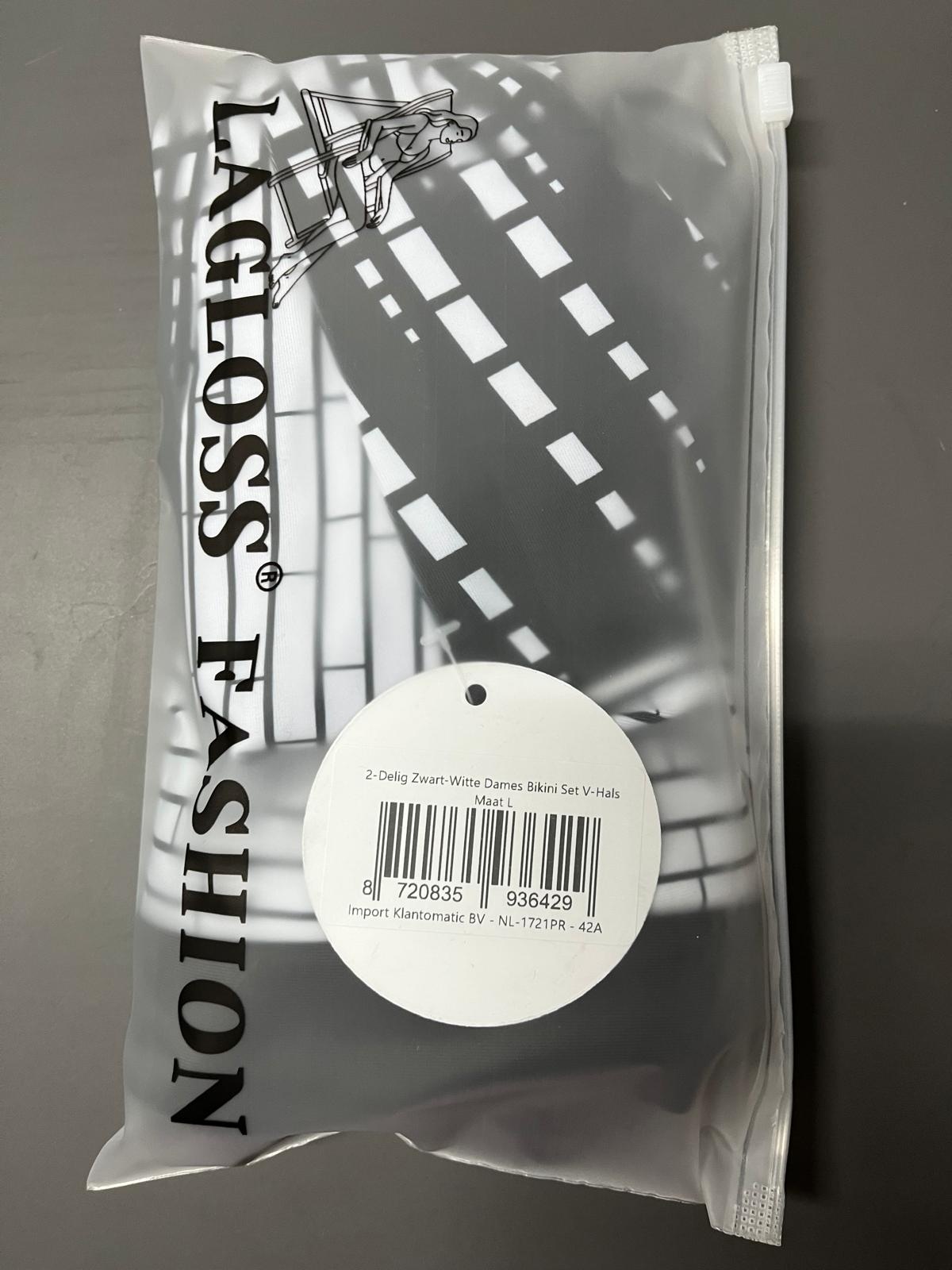 LaGloss® 2-Delig Zwart-Witte Dames Bikini Set V-Hals – Hoog Elastisch en Comfortabel - Zomer Strandoutfit - Hoge Stretch Zwemkleding – Maat L