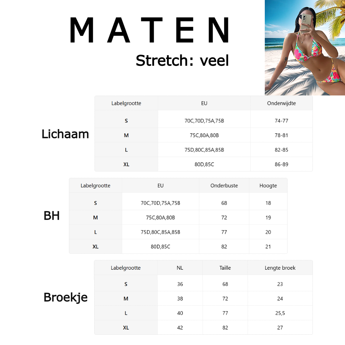 Gemaakt van hoogwaardig polyester en elastaan, voelt deze bikini zacht en comfortabel aan op de huid en biedt optimale stretch. Dankzij het sneldrogende materiaal is deze bikini perfect voor een dagje strand, zwembad of vakantie.