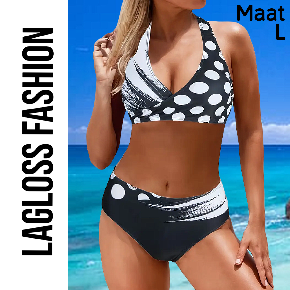 LaGloss® 2-Delige Bikini Set met Zwart Wit Print Maat L - Trendy Badmode voor Dames