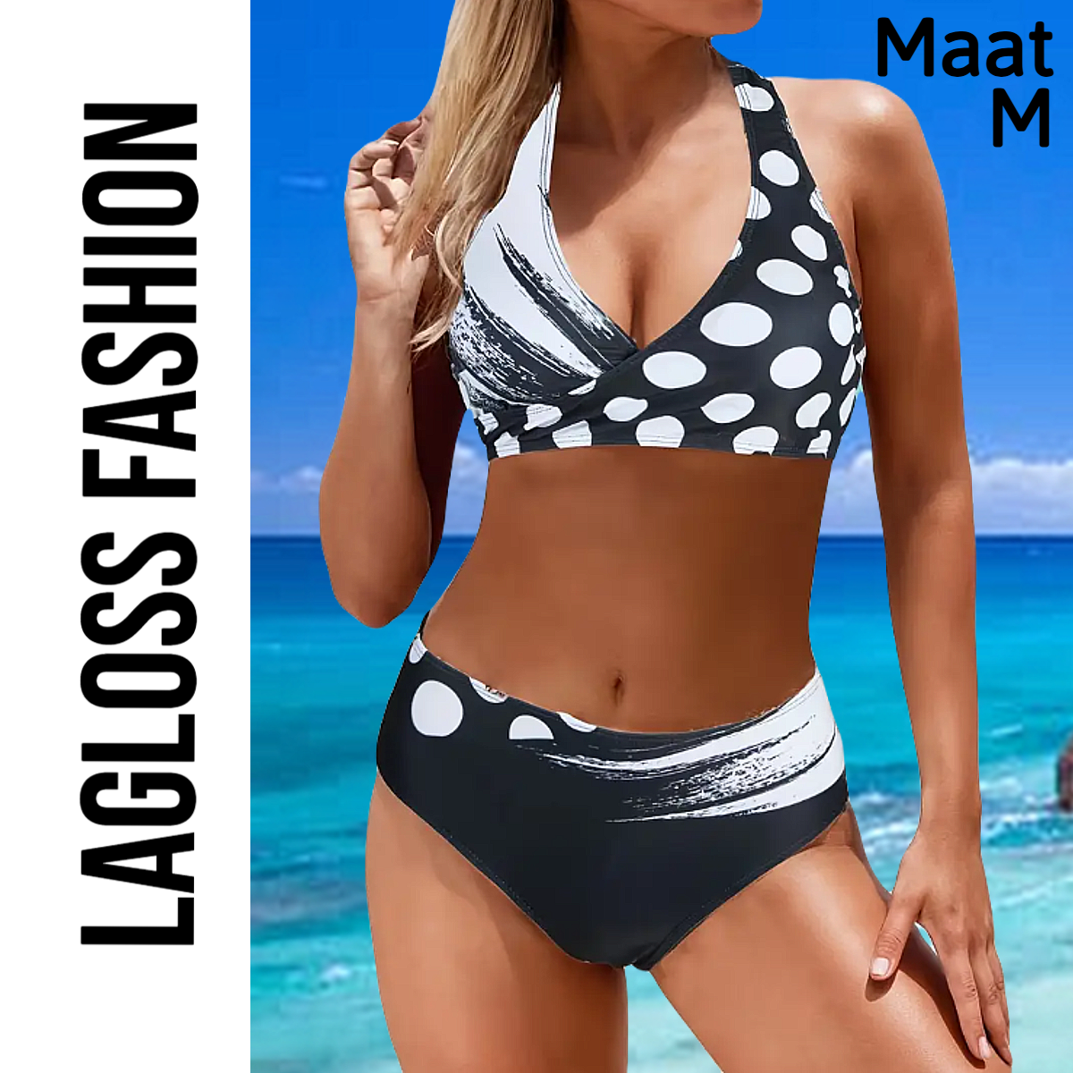 LaGloss® 2-Delige Bikini Set met Zwart Wit Print Maat M - Trendy Badmode voor Dames