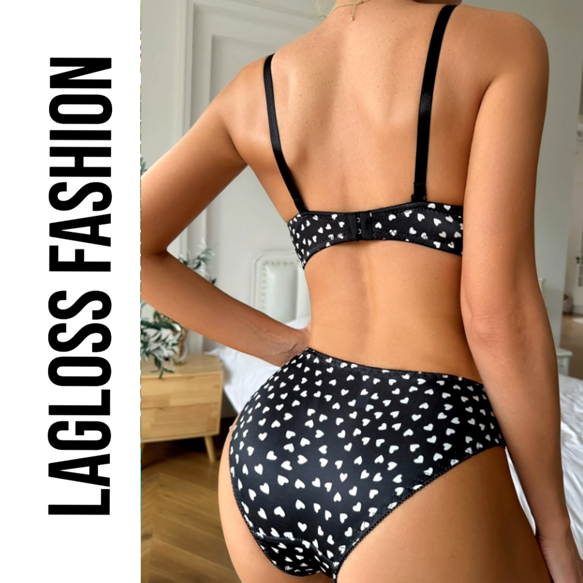 De LaGloss® bikini met hartjesprint is niet alleen een stijlvol statement, maar ook een comfortabele keuze. Combineer met een witte pareo, strandhoed en slippers voor een onweerstaanbare outfit.