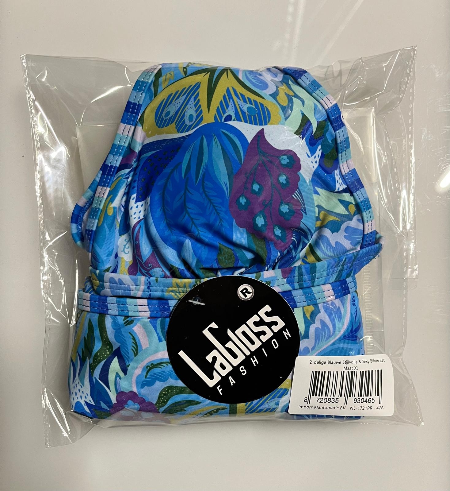 LaGloss® 2-delige Blauwe Stijlvolle & Sexy Bikini Set – Middel Elastische Random Print – Perfect voor Strand – Maat XL