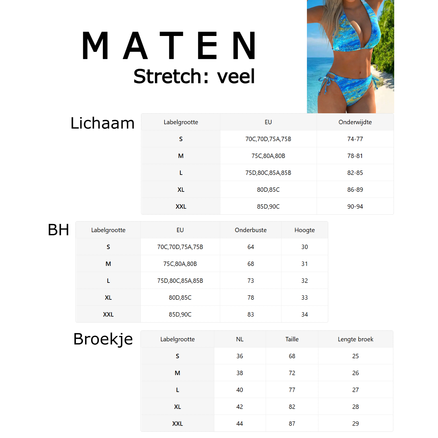 Deze tweedelige bikini is ontworpen voor vrouwen die zich zelfverzekerd, modieus en comfortabel willen voelen tijdens warme stranddagen of zwembadmomenten.
