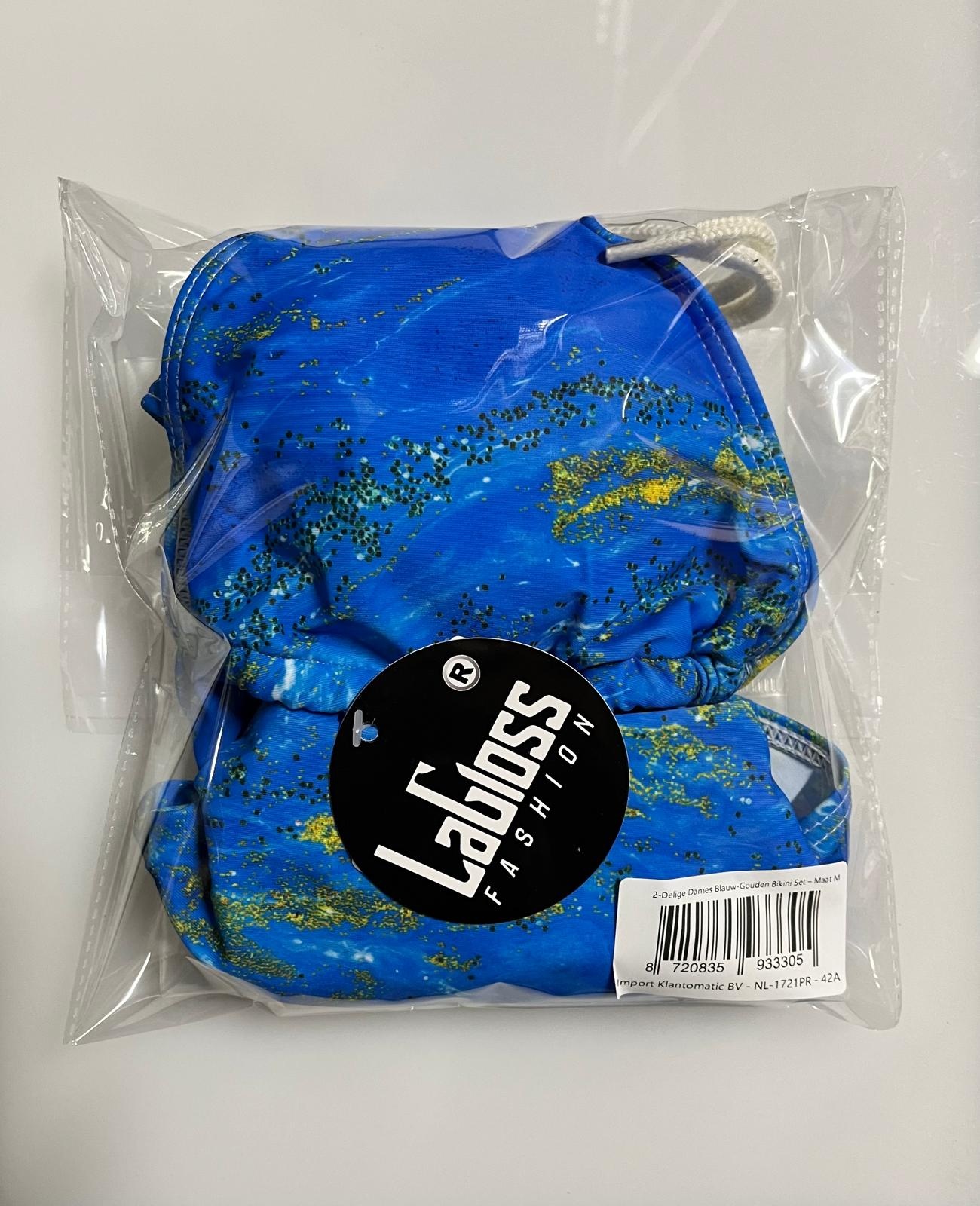 LaGloss® Dames Blauw-Gouden Bikini Set – 2-Delig – Sportief & Sexy Design – Hoog Elastisch Sneldrogend Materiaal – Zomer Strandmode – Maat M