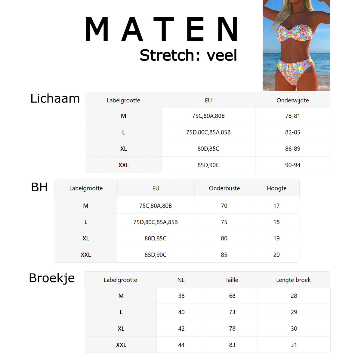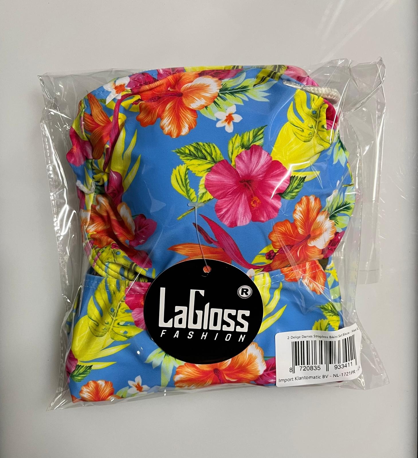 LaGloss® Dames Strapless Bikini Set – 2-Delig – Modieuze Zomerprint – Hoog elastische & Sneldrogende Stof – Sexy Zomerse Strandkleding – Maat XL