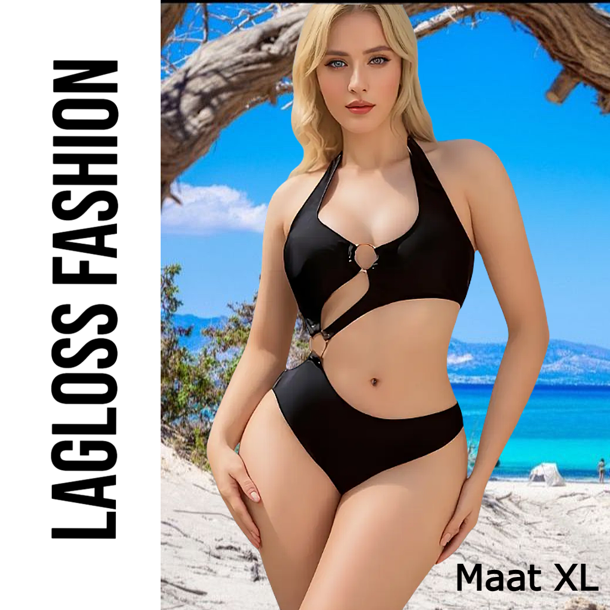 LaGloss® 2-Delige Sexy Asymmetrische Bikini Set Zwart – Maat XL | Gedurfde & Flatterende Dames Badmode