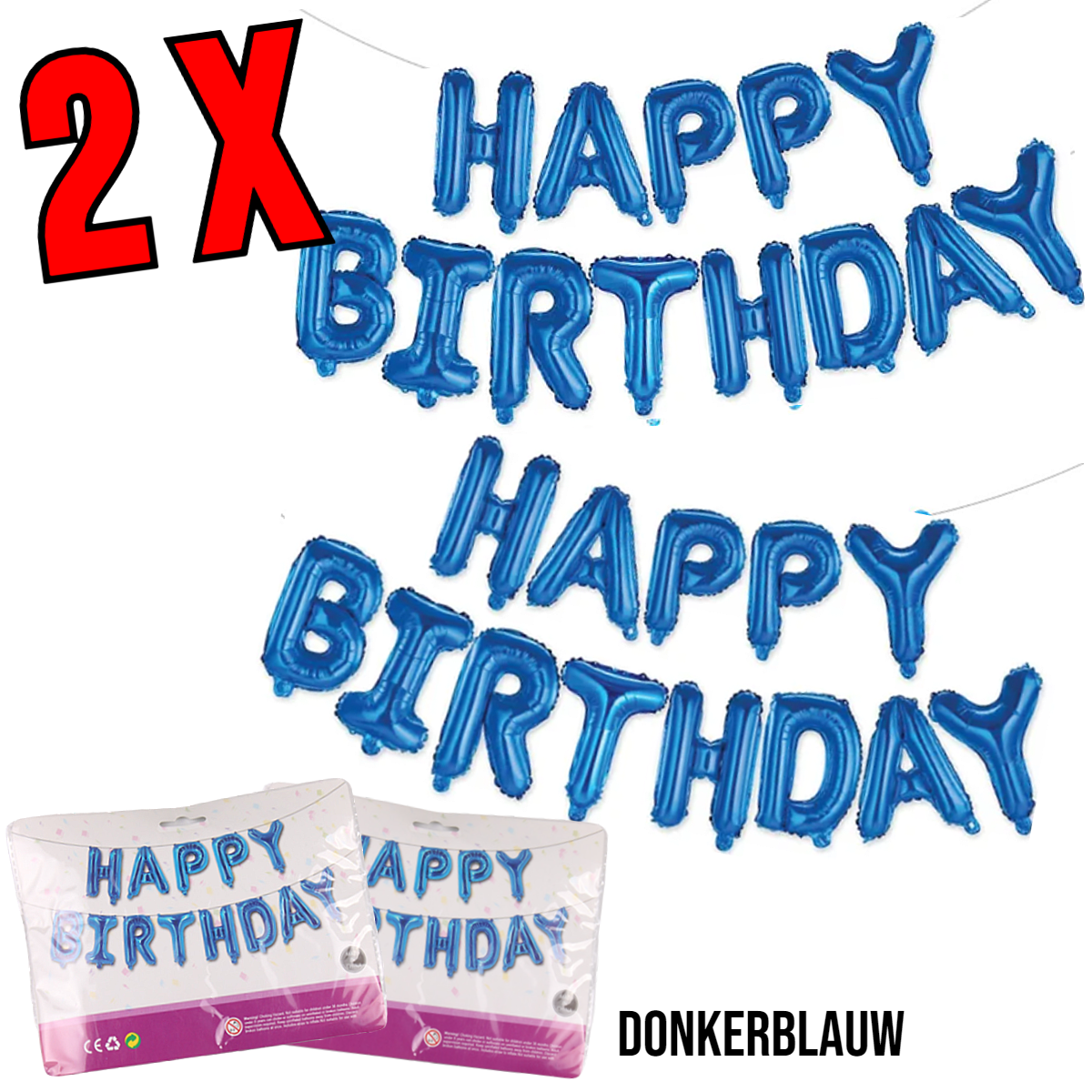 Allernieuwste.nl® 2 SETS Happy Birthday Ballonnen Zilver - Feest Versiering Verjaardags Folie Ballonnen Feest Decoratie Slinger Donker Blauw - 2 sets