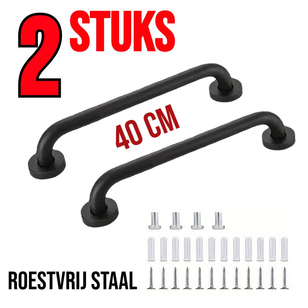 Allernieuwste.nl® 2 Stuks Handgrepen Wandbeugels Zwart Voor Senioren Ouderen - Metaal Roestvrij Staal 40cm Douche Badkuip Greep - Badkuip Handvat Bad Handgreep Douchegrepen Badkuip - RVS Handgreep voor Wandmontage WC Badkamer Douche Zwart - 2 STUKS