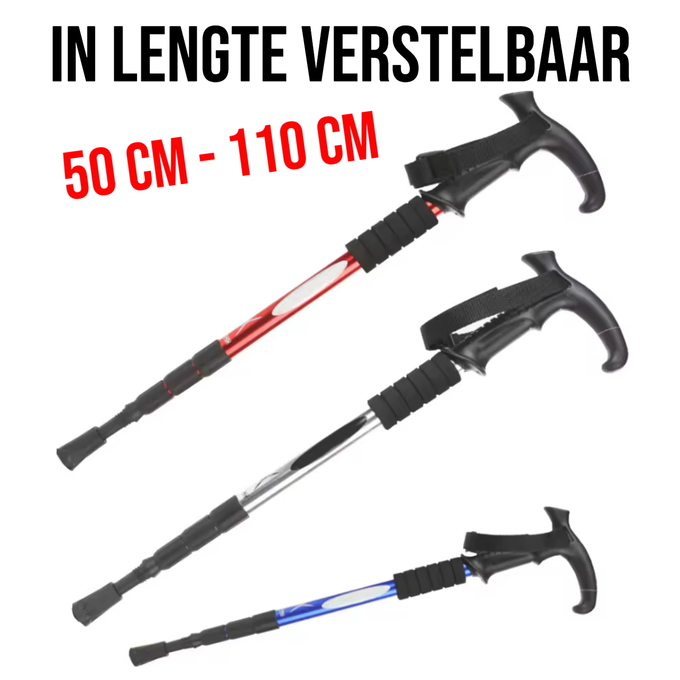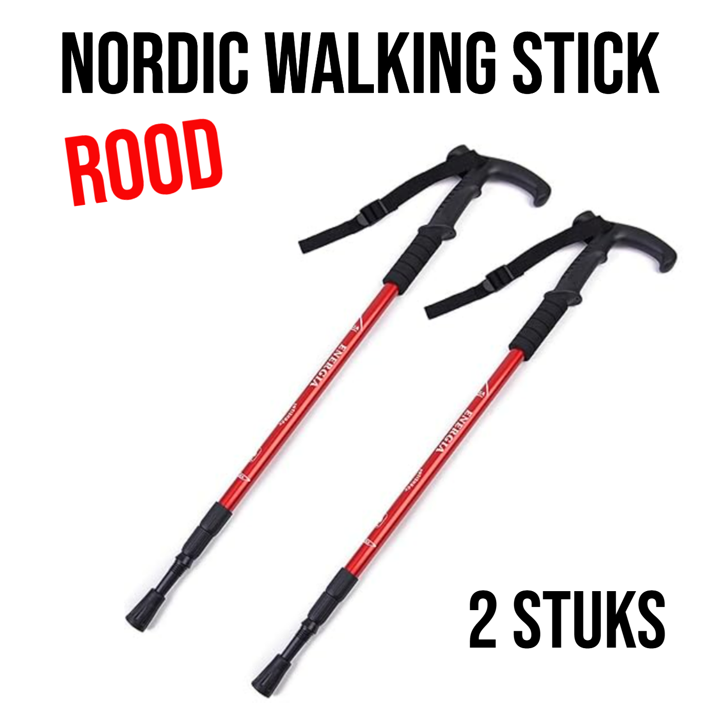 2 Stuks Nordic Walking Stick Rood – Verstelbare Aluminium Wandelstok - Uitschuifbaar 50–110 cm