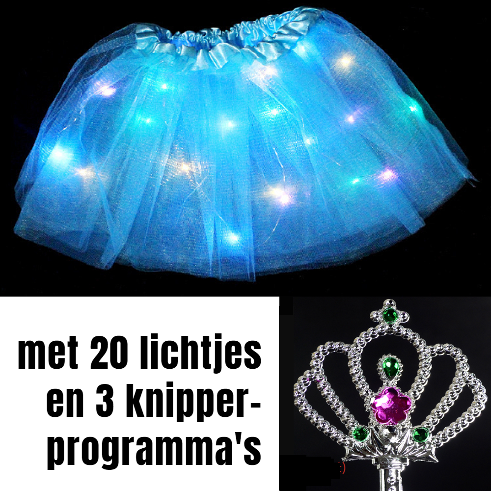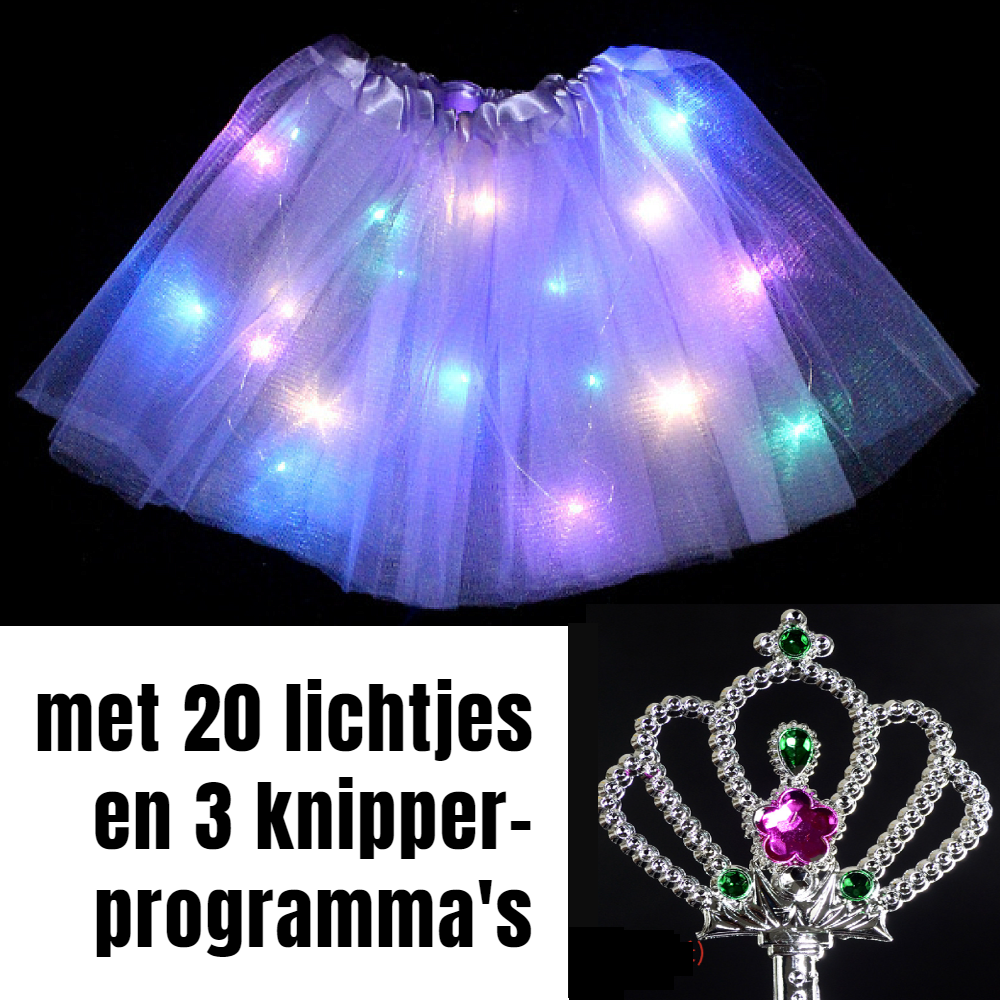 Allernieuwste.nl® 2 STUKS Tutu Kinder Rokje met Gekleurde Lichtjes PLUS 2 STUKS Toverstaf - Kinder Petticoat - 2 Stuks: PAARS + BLAUW