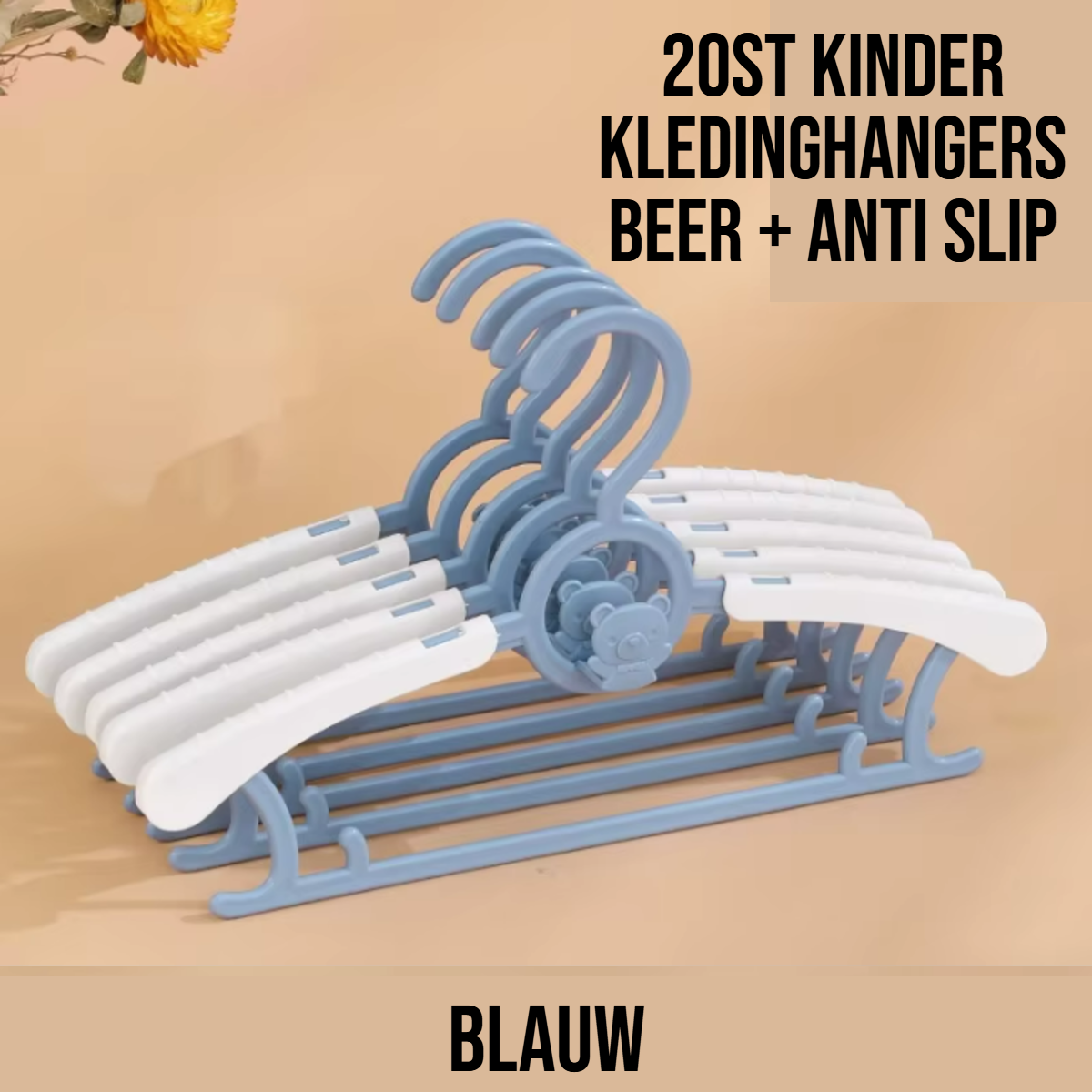 20 Stuks Kinder Kledinghangers – Beer Design & Anti-Slip – BLAUW - Unisex Baby & Kinderkledinghangers