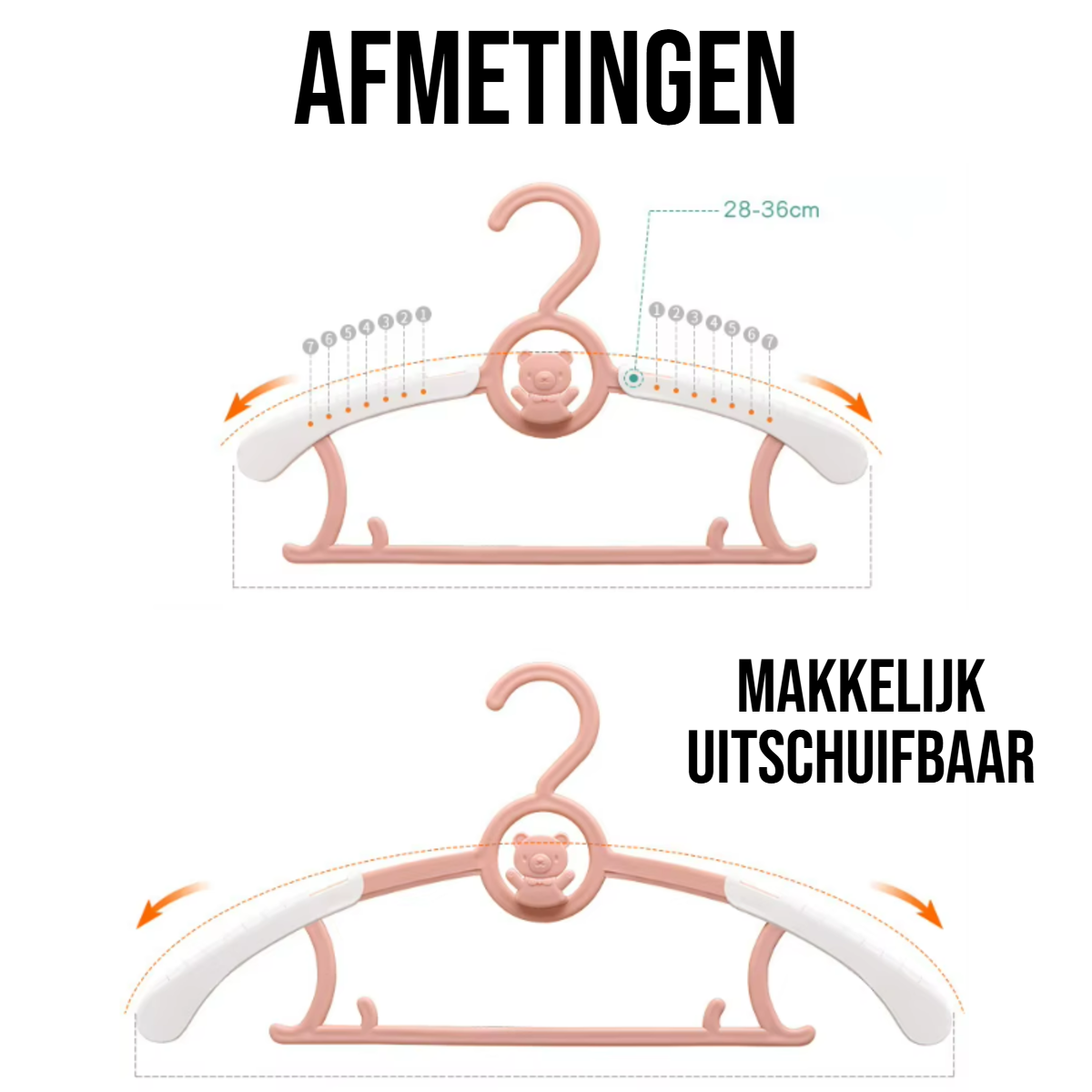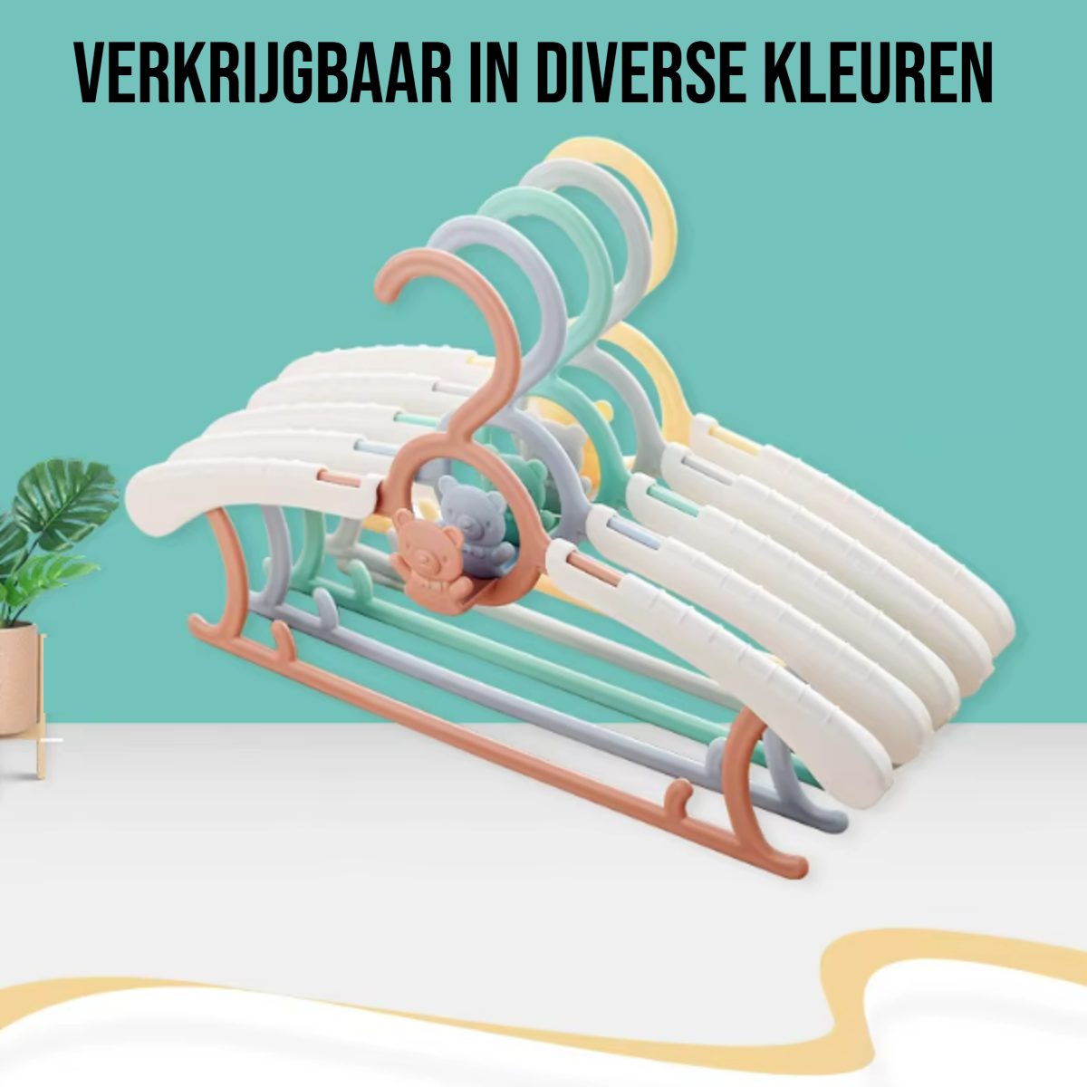 Creëer een opgeruimde en gezellige sfeer in de kinderkast met deze beer designkinderkledinghangers. Zo blijft de kleding altijd mooi en kreukvrij hangen, klaar voor elk nieuw avontuur!