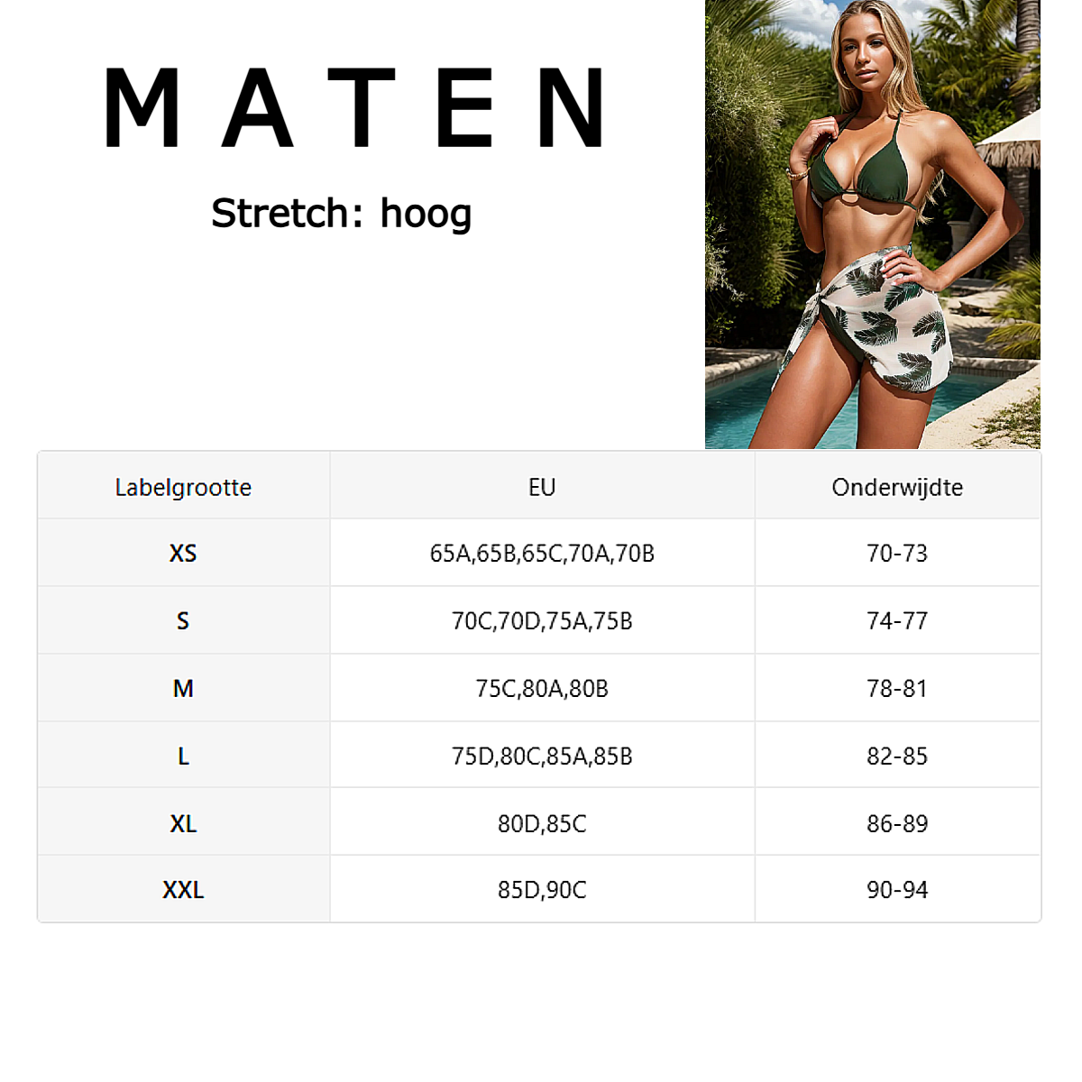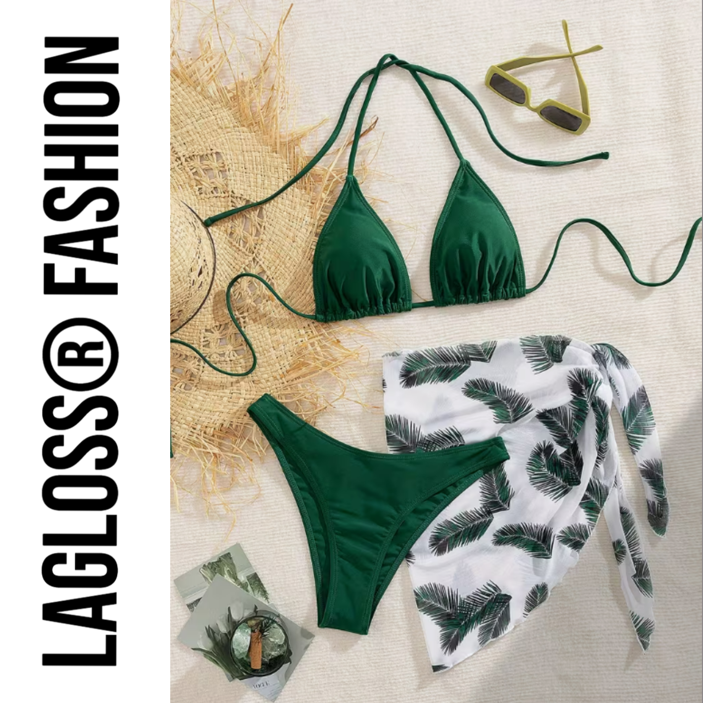 Stap met vertrouwen de zomer in met de LaGloss® 3-delige bikini set in een frisse groene tint, compleet met een stijlvolle wikkelrok. Deze badmode is speciaal ontworpen voor dames die zowel comfort als elegantie zoeken op het strand, bij het zwembad of tijdens een zomervakantie.