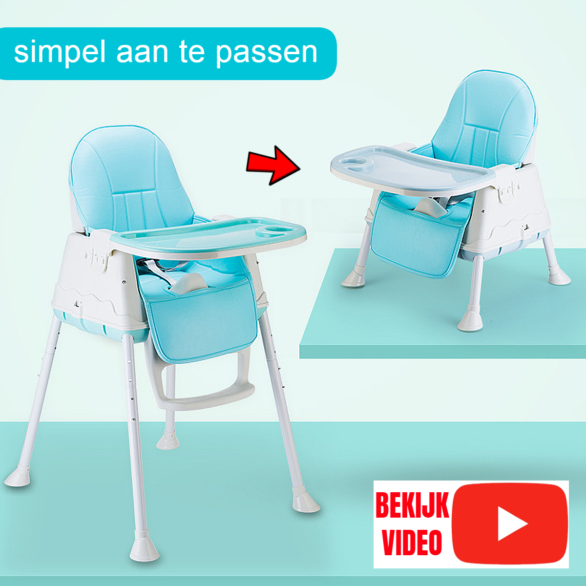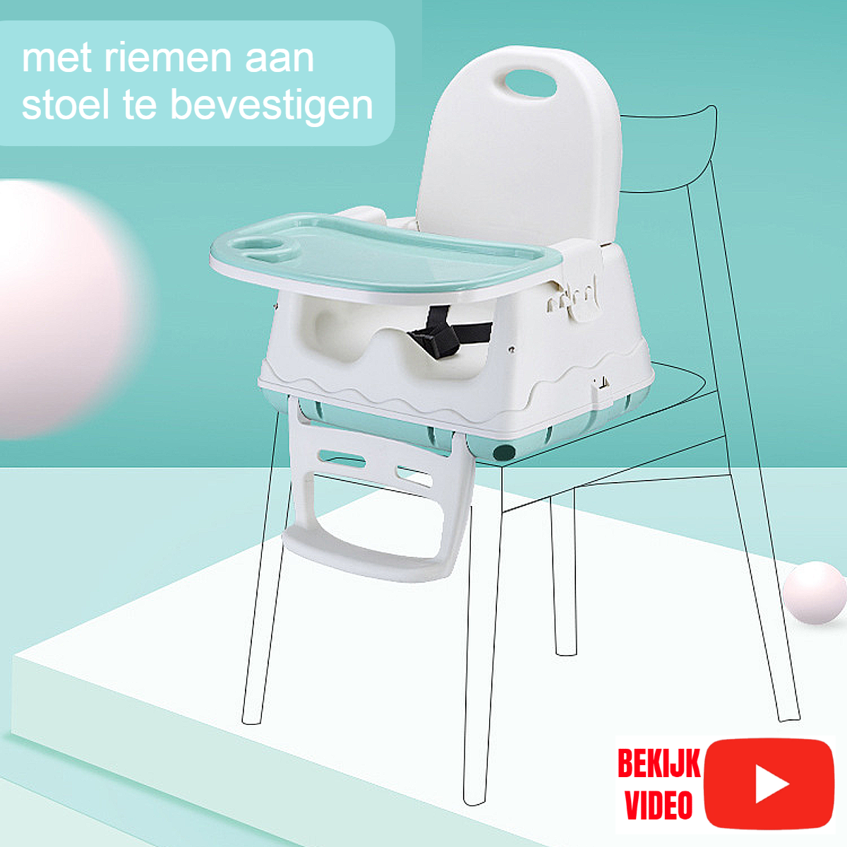 Allernieuwste.nl® 3-in-1 Kinderstoel Verstelbare Baby Stoel Peuterstoel - Voor Eten, Spelen & Rijden !