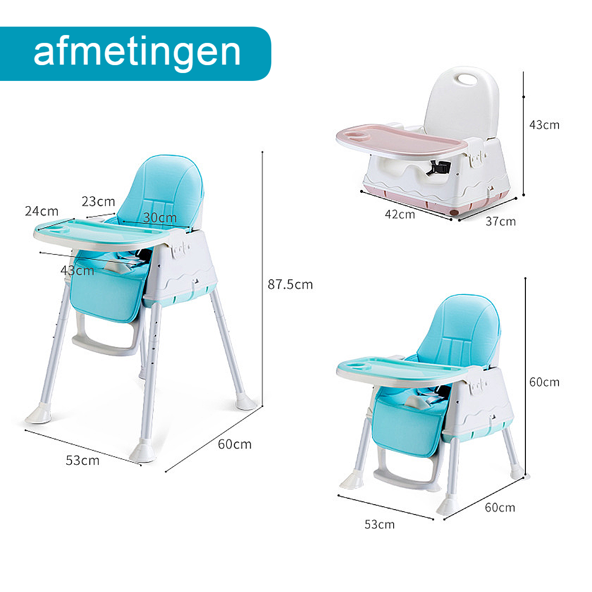 Zie foto voor de diverse afmetingen van deze babystoel.