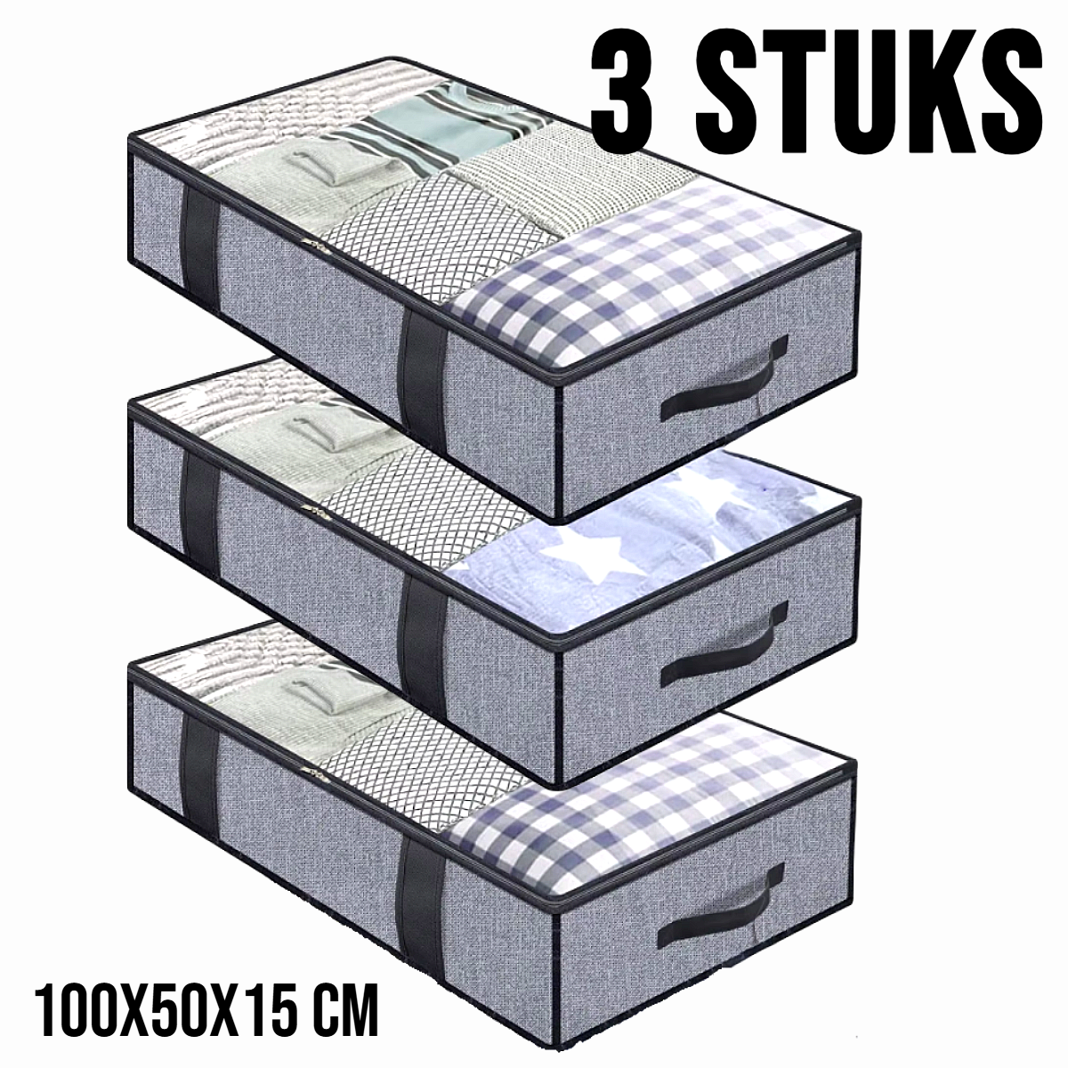 Allernieuwste.nl® 3 Stuks Opbergtassen Onder Bed Opberg Zakken Kleding Dekbed Speelgoed Kerst Onderbed 75L 100x50x15cm ##
