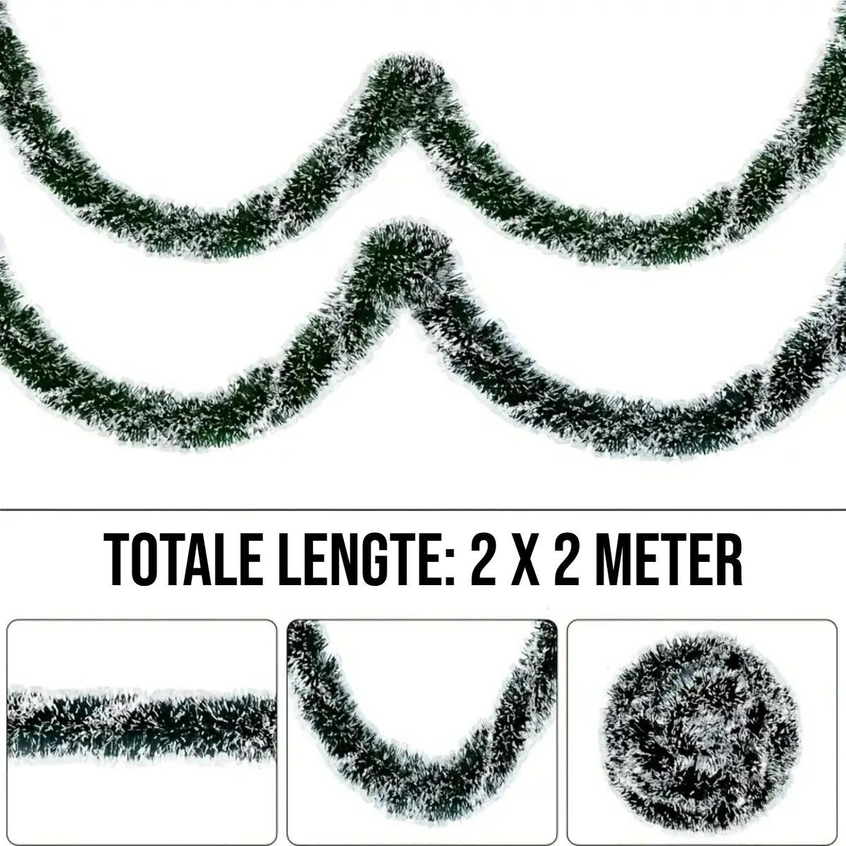 Luxe Kerstversiering met Sneeuw - Dé Perfecte Kerstdecoratie ! Ben je klaar om jouw kerstdecoratie een elegante boost te geven? Met deze 4 meter lange kerstslinger transformeer je elke ruimte tot een sfeervol winterparadijs. Deze luxe kerstslinger, afgewerkt met nepsneeuw, is de perfecte keuze om jouw kerstversiering compleet te maken.