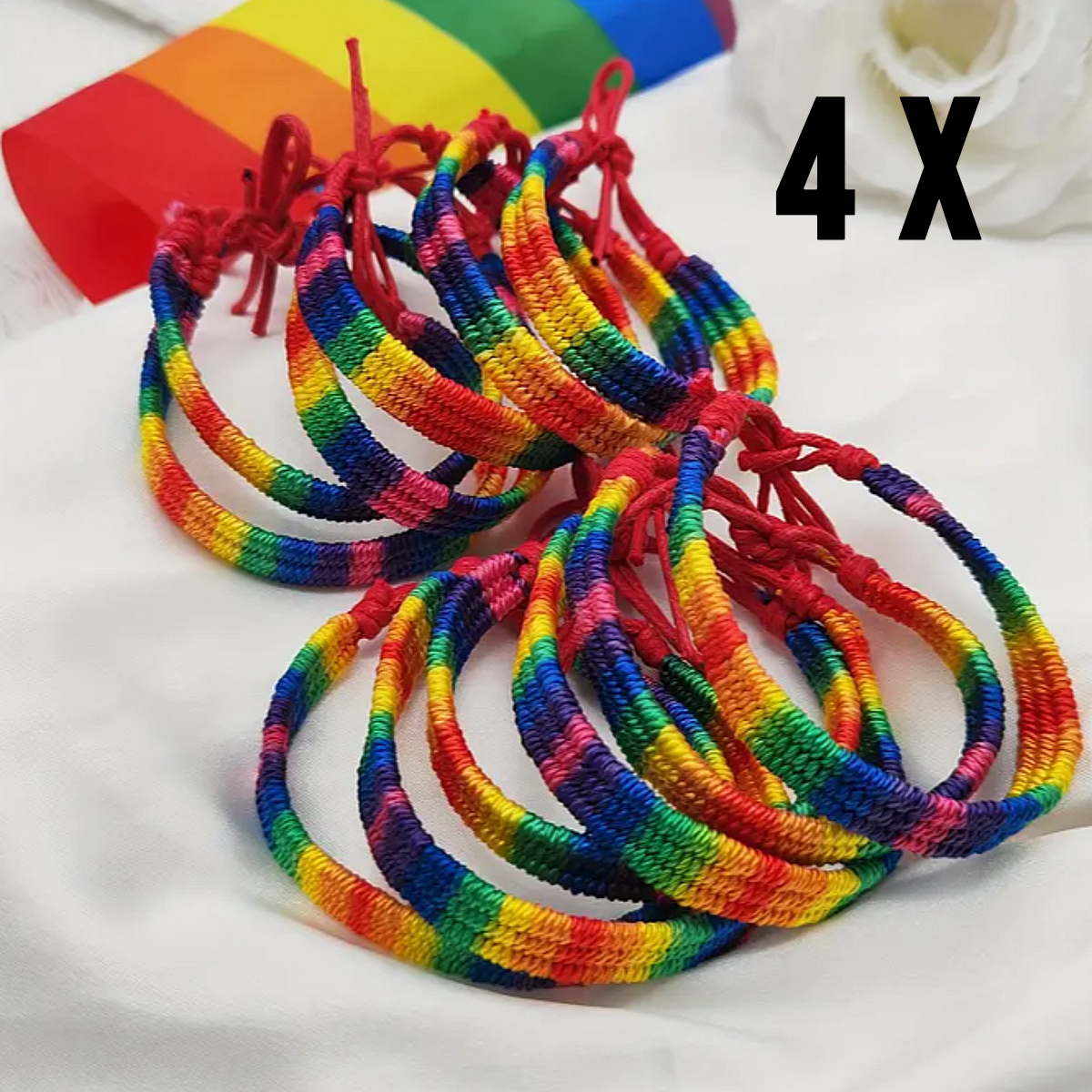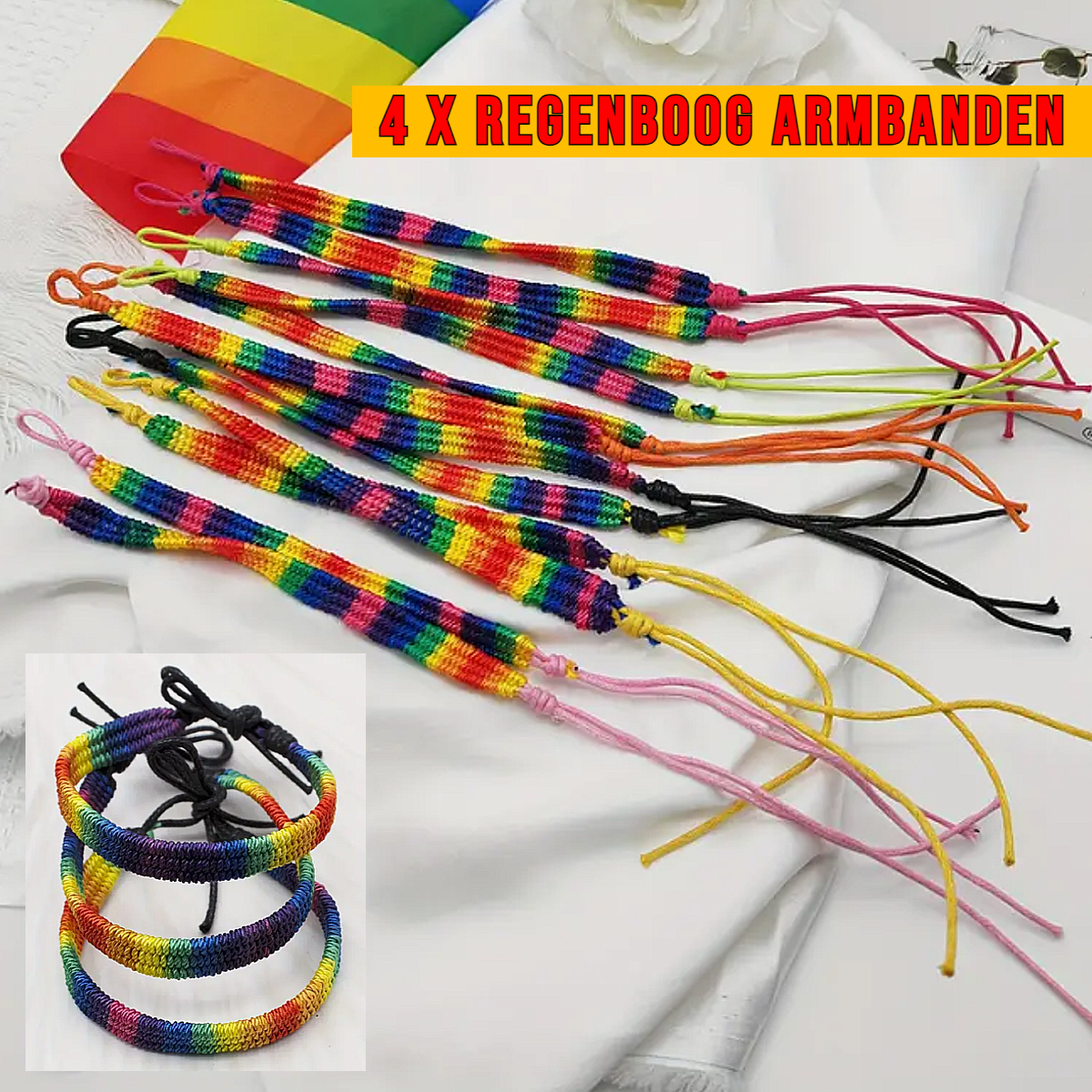 Allernieuwste.nl® 4 Stuks LGBT Regenboog Armbanden - Handgemaakte Vriendschapsbanden Met Koord %%