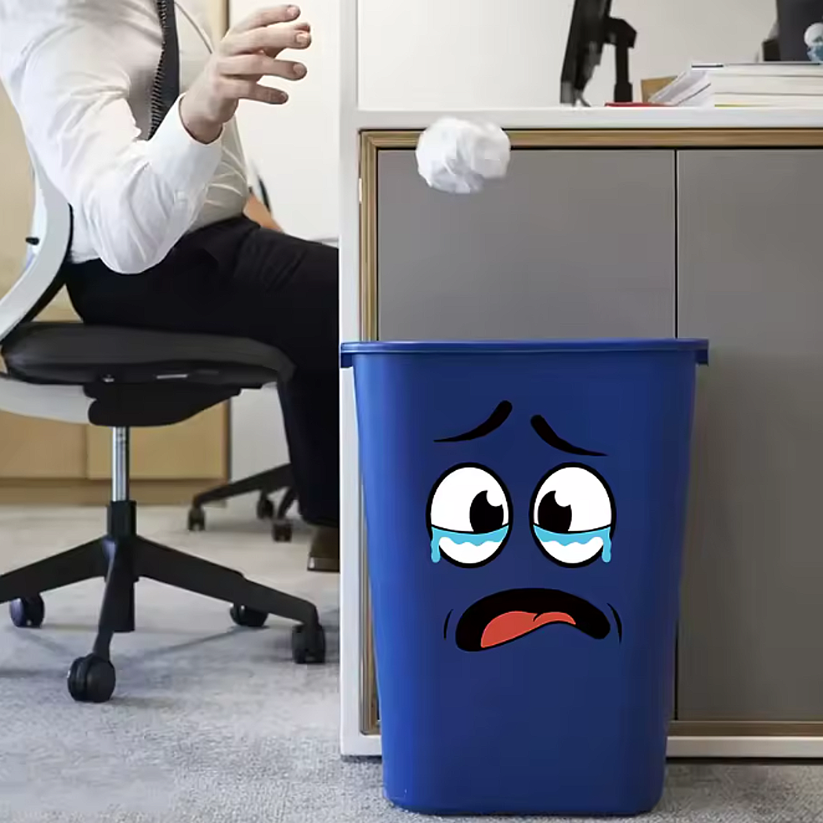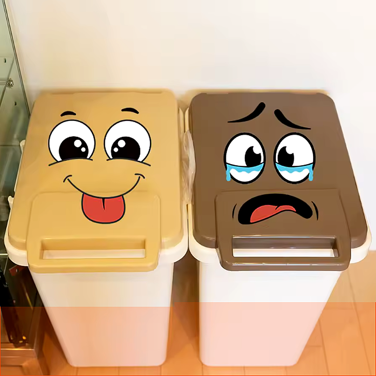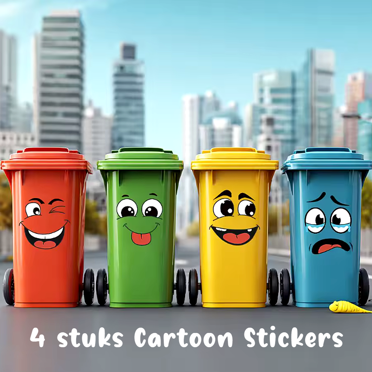 4x Vuilnis Container Cartoon Gezicht Stickers – PVC Zelfklevend Decoratie voor Prullenbak, Badkamer - 4 stuks