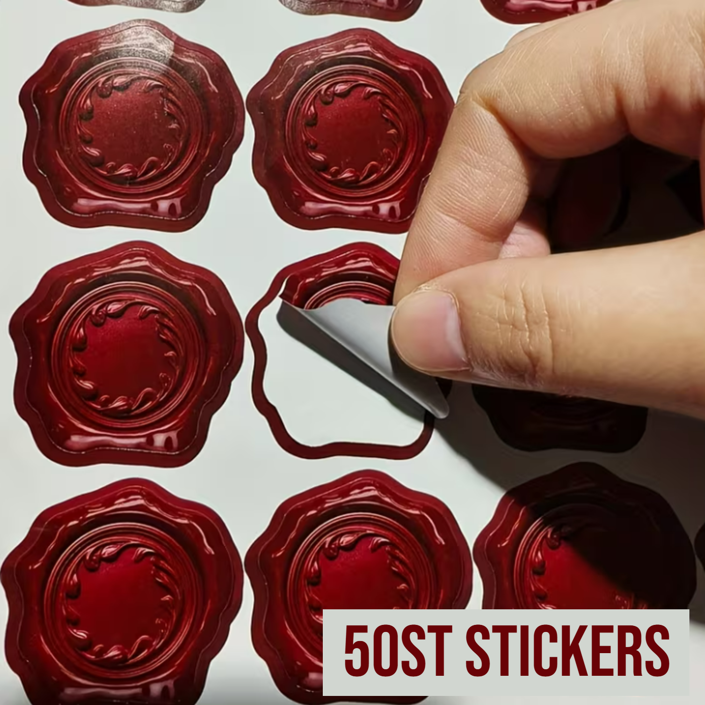 50 Rode Waxzegel Stickers - 3,5 x 3,6 cm – Voor Enveloppen, Cadeaus & Uitnodigingen