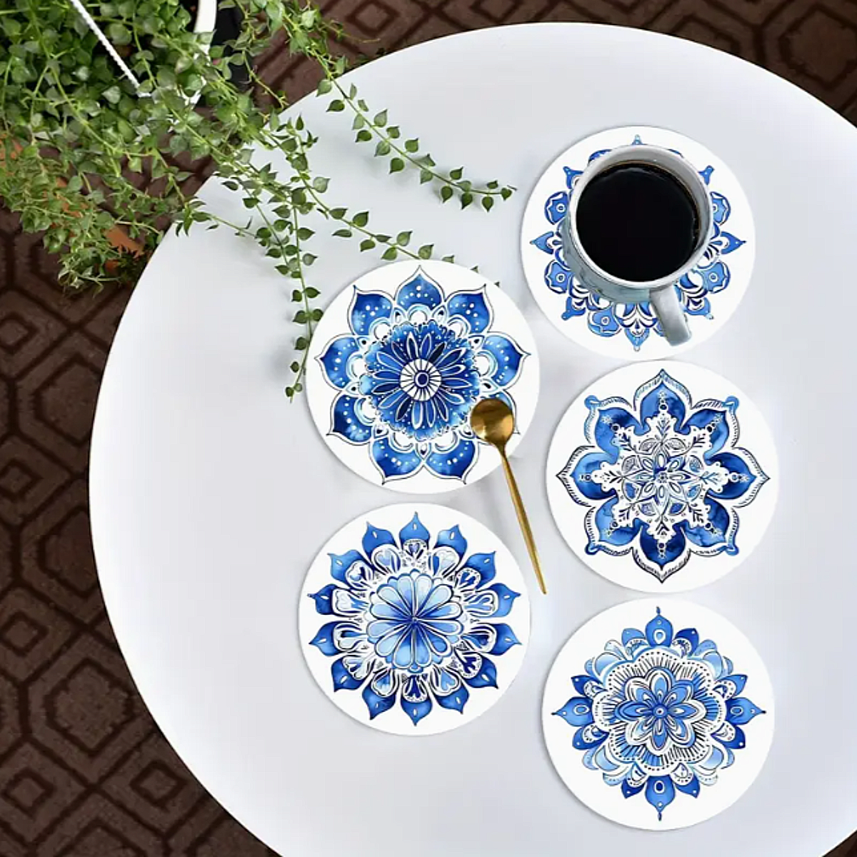 De onderzetters zijn ontworpen naar iconische Mandala ontwerpen, geïnspireerd door de klassieke traditie. Deze decoratieve drankmatjes voegen een stijlvol en cultureel accent toe aan elk interieur, van moderne huizen tot traditionele decors. Perfect als geschenk of om je eigen huis een unieke uitstraling te geven.