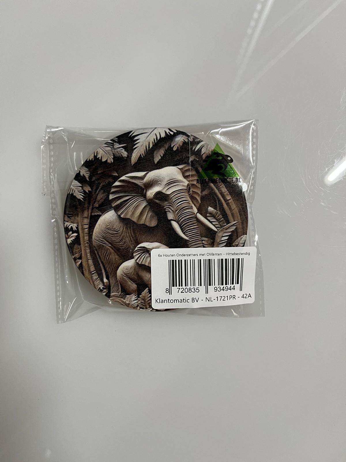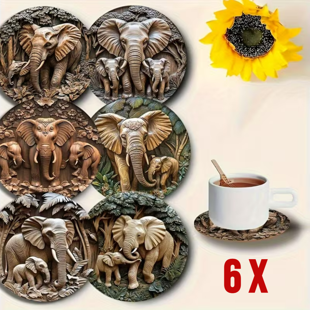 Allernieuwste.nl® 6x Houten Onderzetters met Olifanten – Hittebestendig - Decoratief – Vintage Natuurstijl