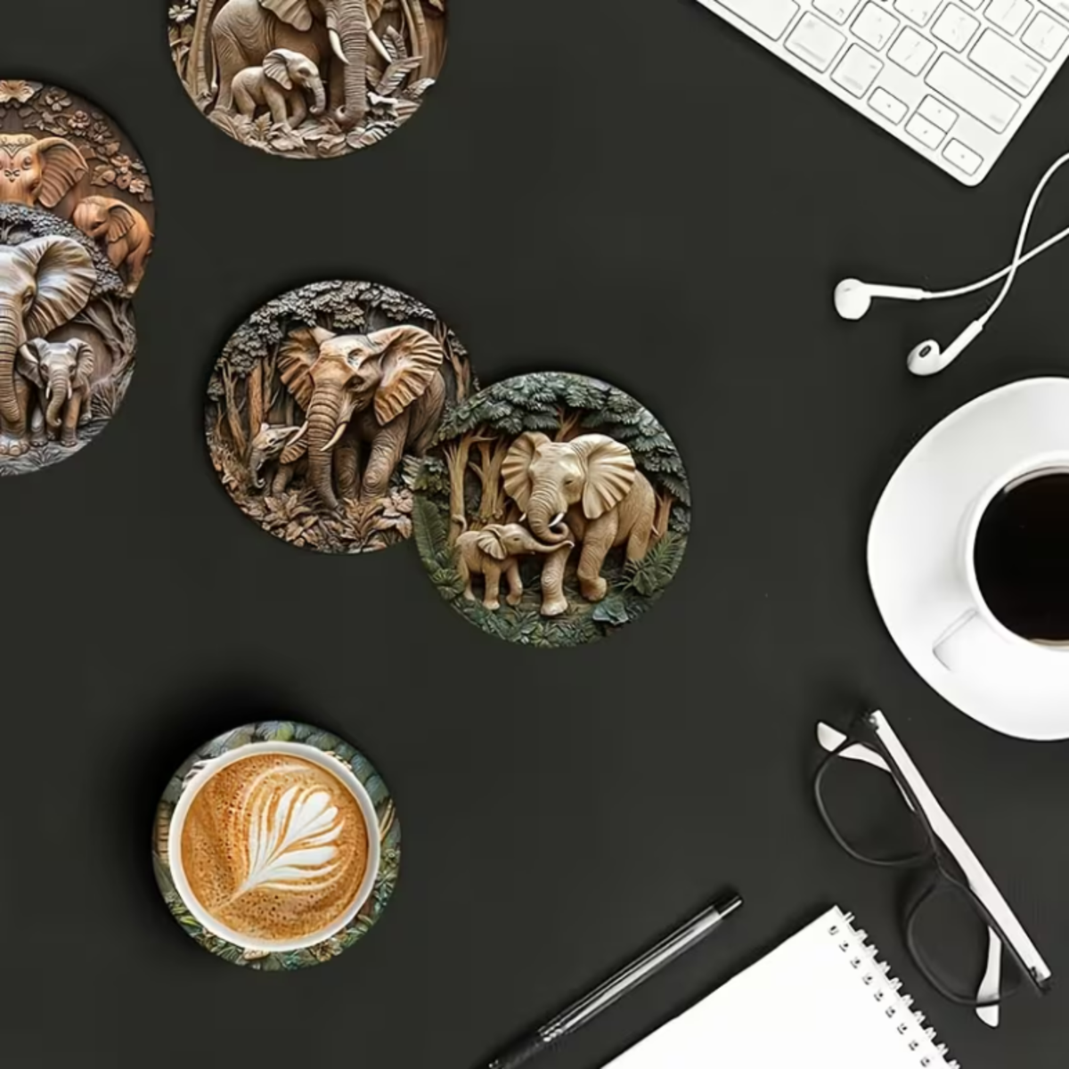 De olifant staat symbool voor kracht, wijsheid en verbondenheid. Dat maakt deze onderzetters niet alleen praktisch, maar ook leuk als decoratief accent in de keuken, woonkamer of op kantoor. Doordat elke onderzetter een andere olifant laat zien, oogt de set speels zonder druk te worden.