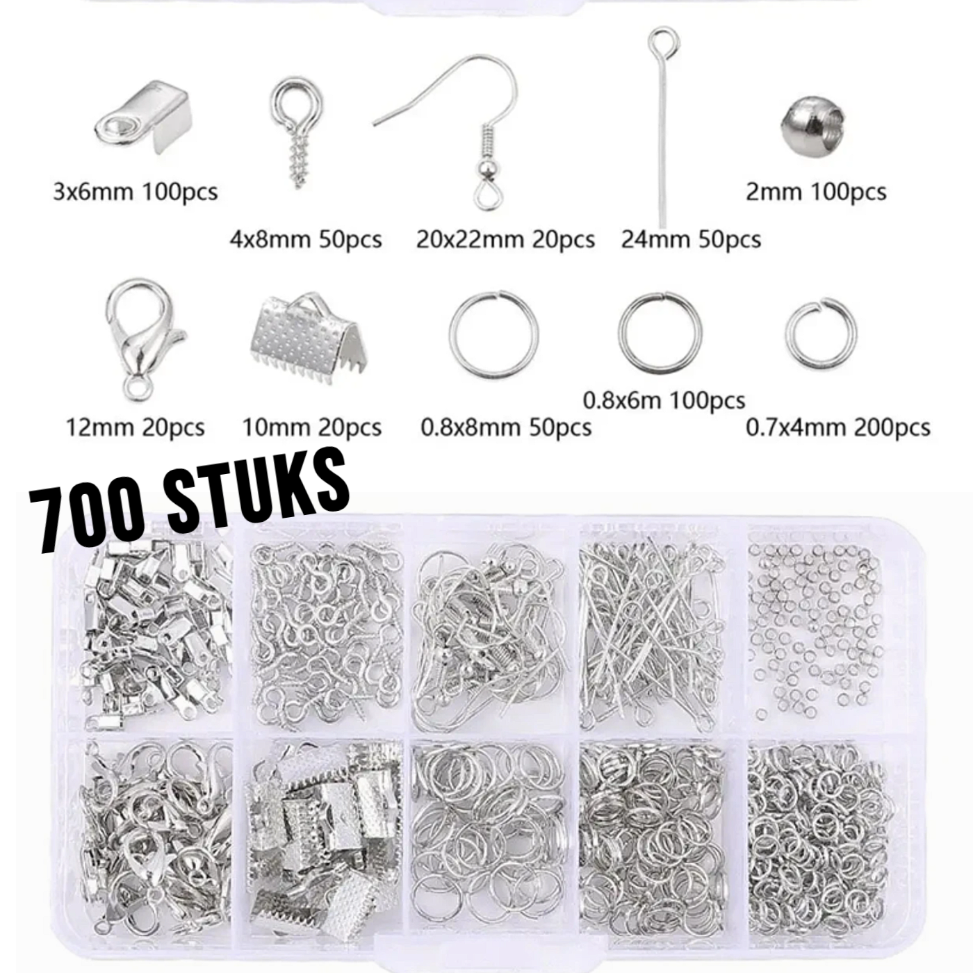 - 700 stuks zilverkleurige sieradenonderdelen