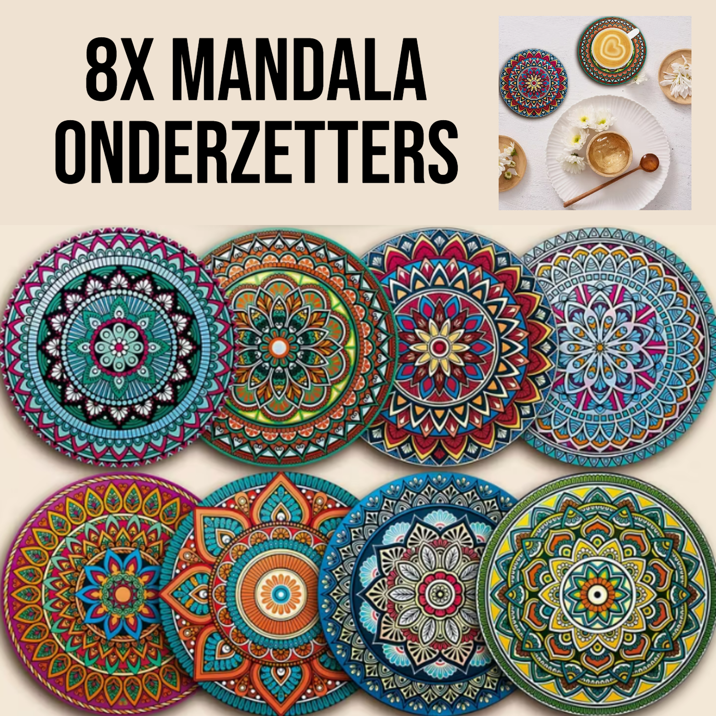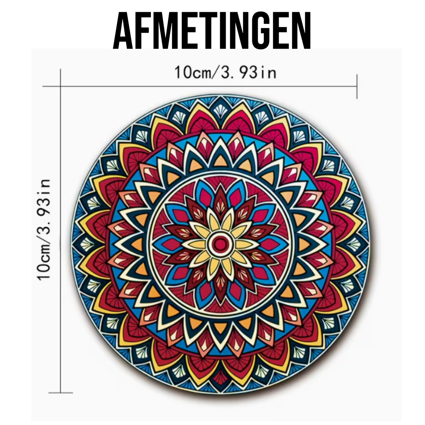 Breng sfeer, bescherming én stijl samen met deze prachtige set van 8 stuks Gekleurde Mandala Onderzetters van hout. Deze decoratieve houten onderzetters met verfijnd mandala-design zijn niet alleen praktisch, maar ook een echte blikvanger op uw tafel. Met een formaat van 10 x 10 cm zijn ze ideaal voor glazen, mokken, kopjes en kleine karaffen.