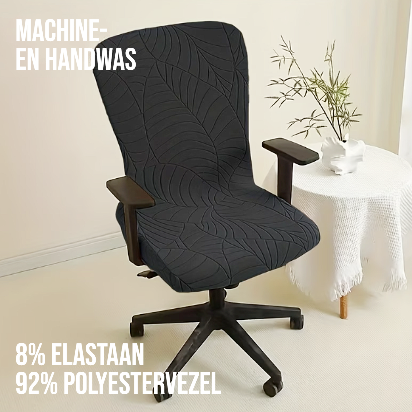 De hoes is gemaakt van elastische vezelstof met jacquard weeftechniek en vormt zich soepel naar de meeste standaard bureaustoelen. Dankzij de rekbare structuur blijft deze bureaustoel hoes netjes op zijn plek zitten zonder te verschuiven. Zo geniet u van betrouwbare stoelbeschermer-eigenschappen tegen slijtage, vlekken en stof, terwijl uw stoel er weer als nieuw uitziet. Ideaal voor dagelijks gebruik tijdens werken, studeren of gamen.