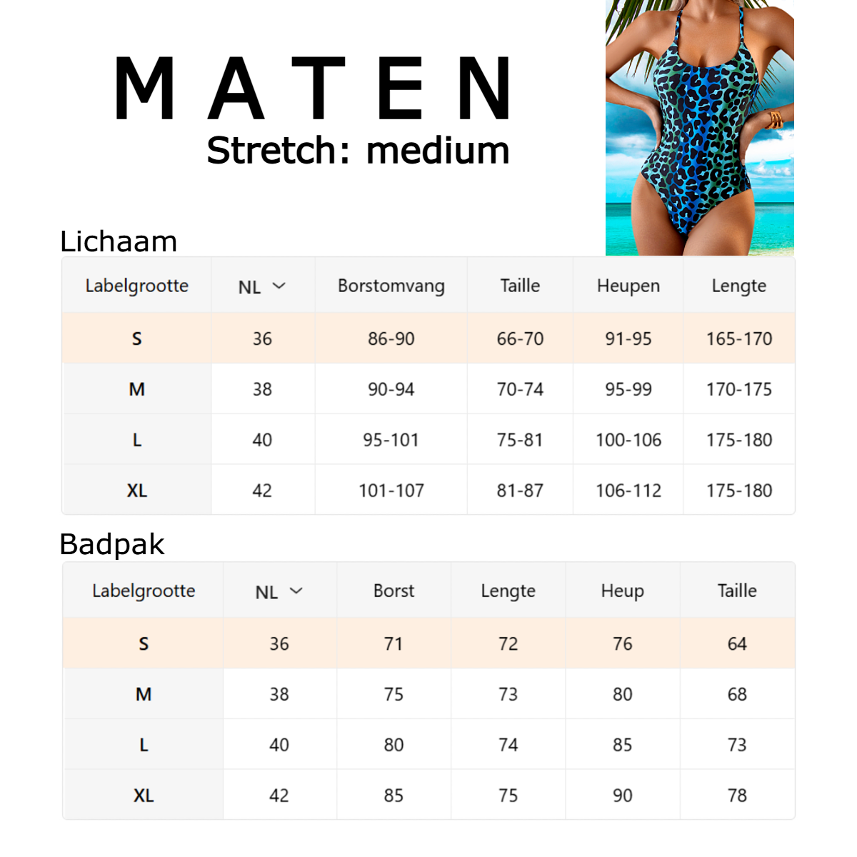 LaGloss® Badpak Panterprint met Blauwe Overloop & Kruisbandjes – Eendelig – Maat L