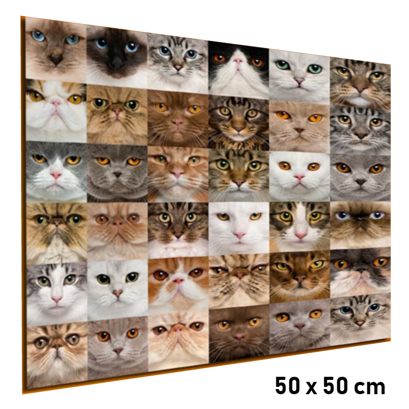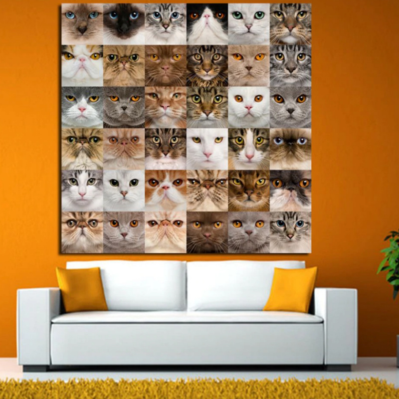 Canvas Schilderij * 36x Kittens voor Katten Liefhebbers * - Kunst aan je Muur - Kattenposter - kleur - 70 x 70 cm