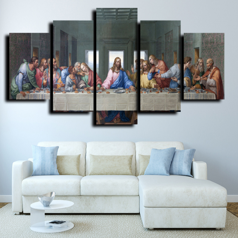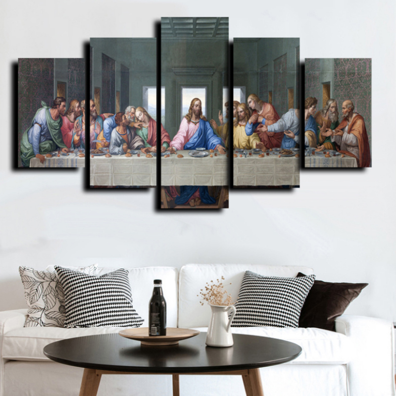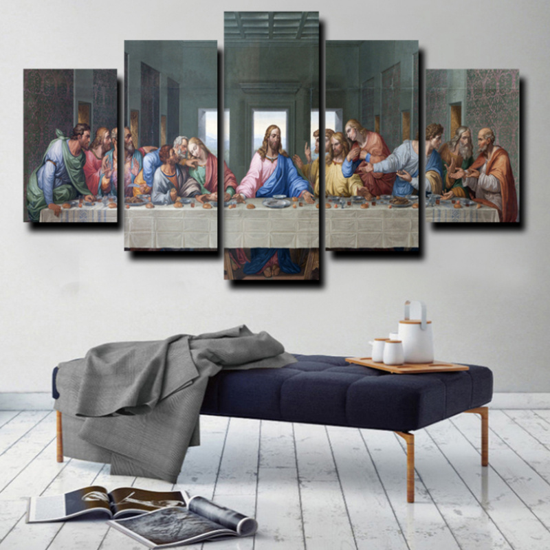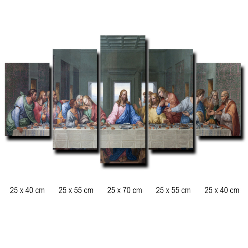 Allernieuwste.nl® Canvas Schilderij 5-luik Het Laatste Avondmaal van Da Vinci - Kunst aan je Muur - Kleur - 5-delig - 70 x 125 cm