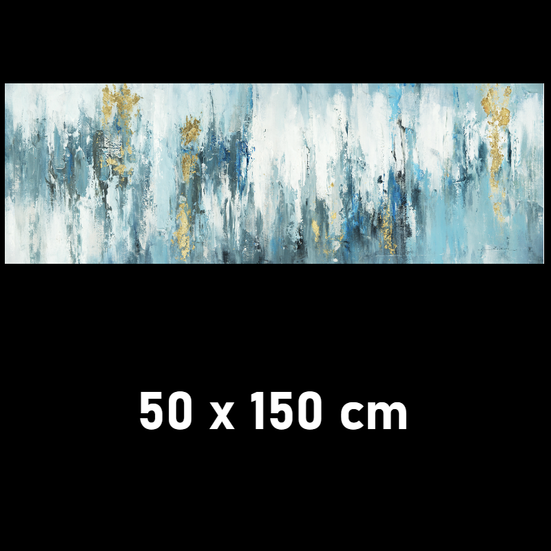 Met een hoogte van 50 cm en een breedte van 150 cm is het schilderij langwerpig van vorm.