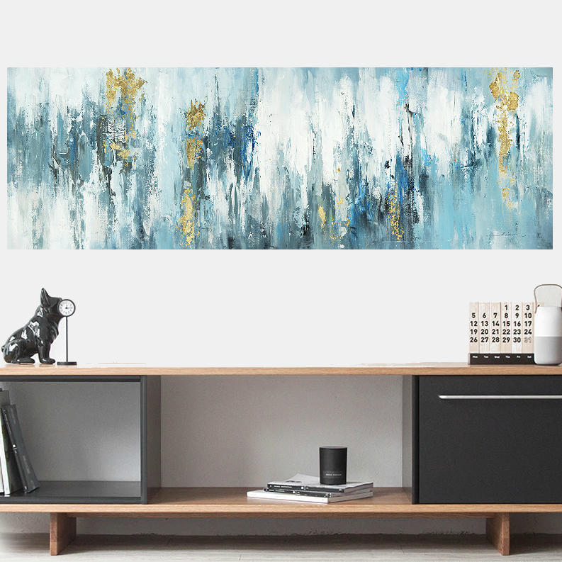 Canvas Schilderij * Blauw - Goud Abstracte Vormen 2 * - Kunst aan je Muur - Kleur - 50 x 150 cm