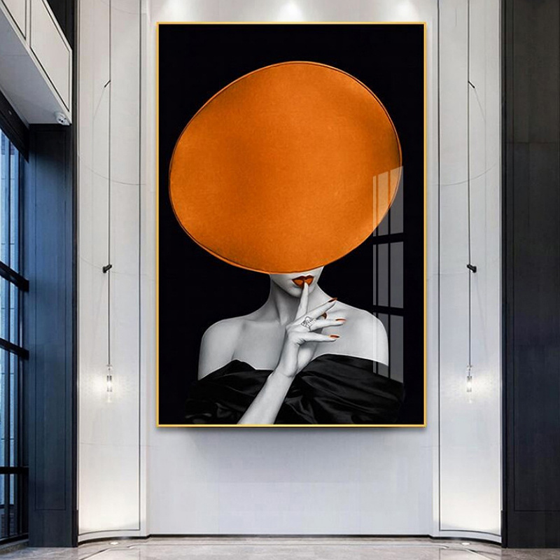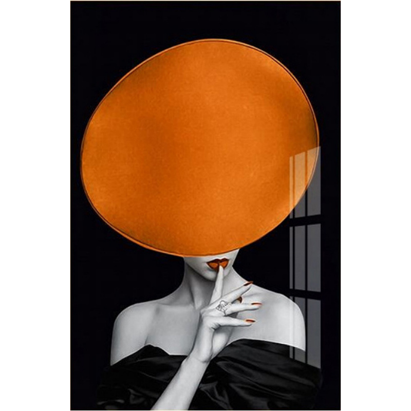 Canvas Schilderij * Dame met enorme Hoed * - Kunst aan je Muur - Modern - zwartwit en oranje - 50 x 75 cm