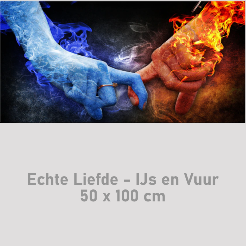 Allernieuwste.nl® Canvas Schilderij * Echte Liefde met IJs en Vuur * - Pop Graffiti - Kleur - 50 x 100 cm