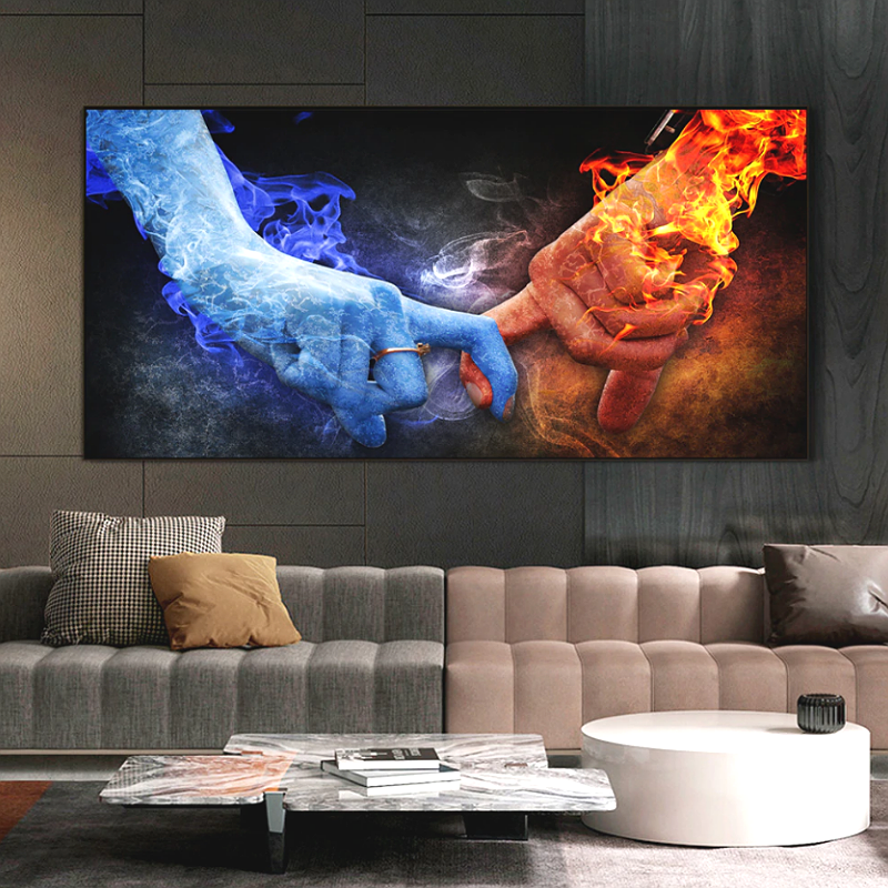 Canvas Schilderij * Echte Liefde met IJs en Vuur * - Pop Graffiti - Kleur - 50 x 100 cm