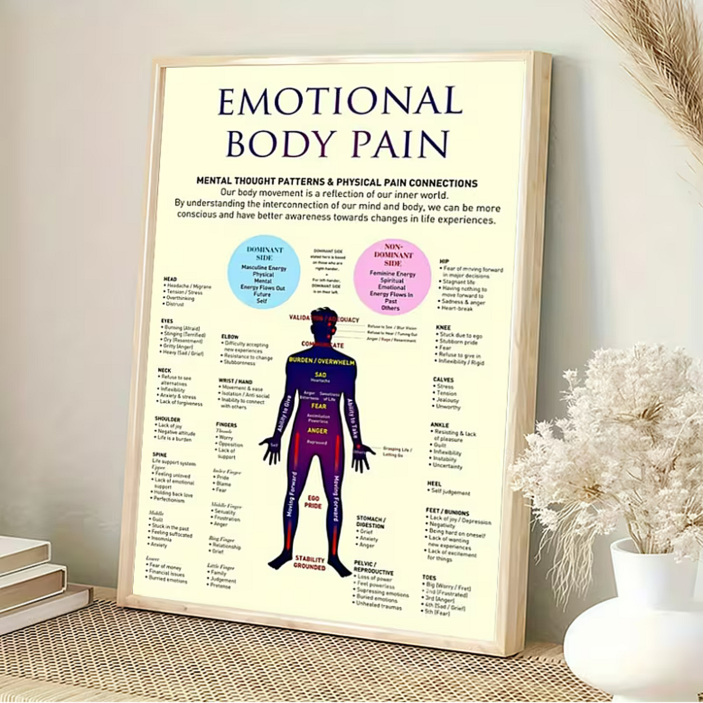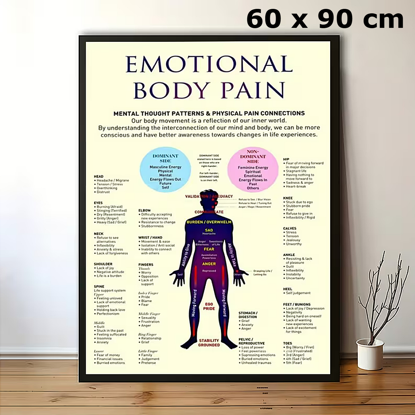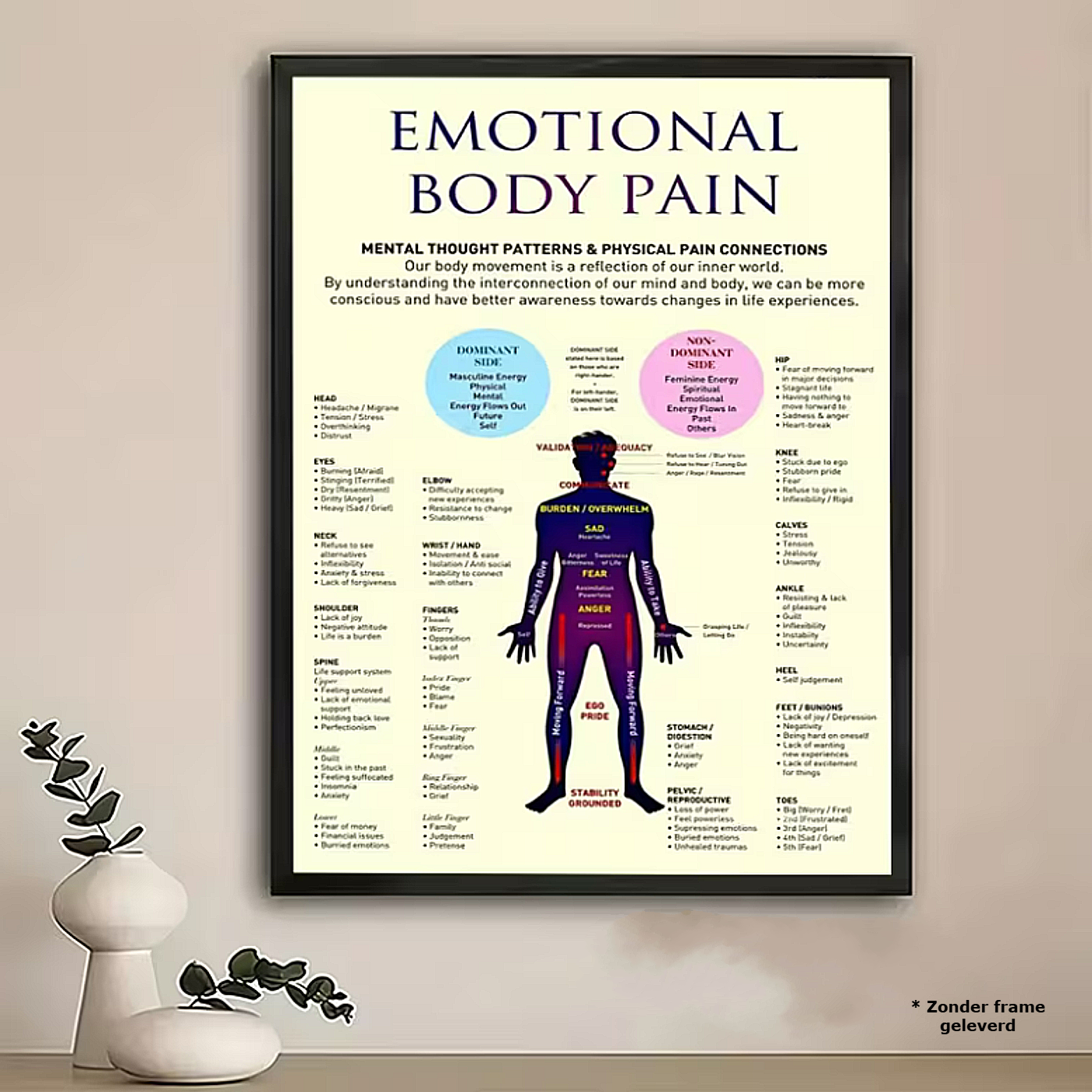 Allernieuwste.nl® Canvas Schilderij Emotionele Lichaamspijn – 60 x 90 cm - Poster – Moderne Cartoon Stijl – Muurdecoratie – Wanddecoratie - Tekst