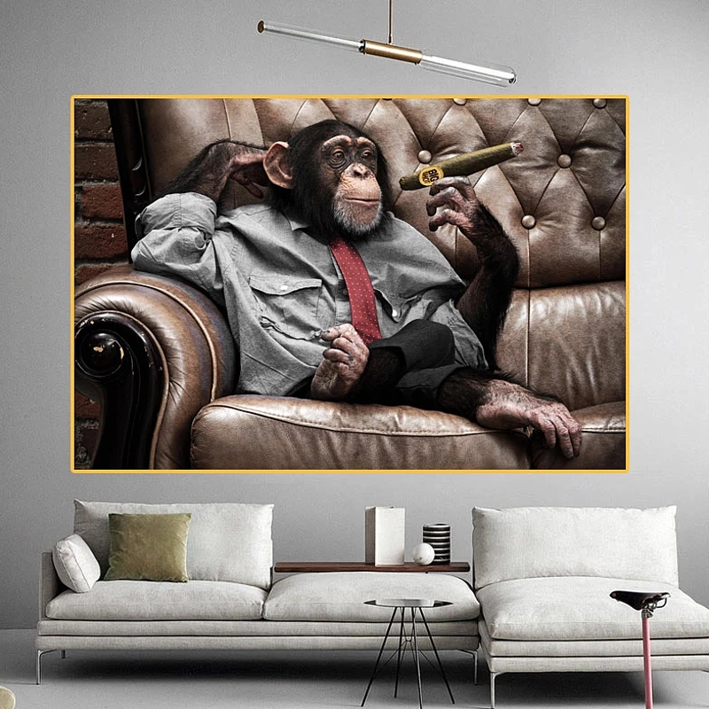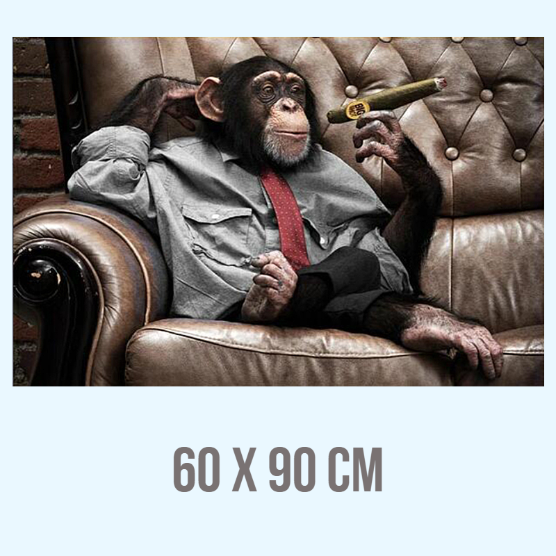 Allernieuwste Canvas Schilderij Gorilla Aap met Sigaar - PopArt Modern - Dieren - Poster - 60 x 90 cm - Kleur