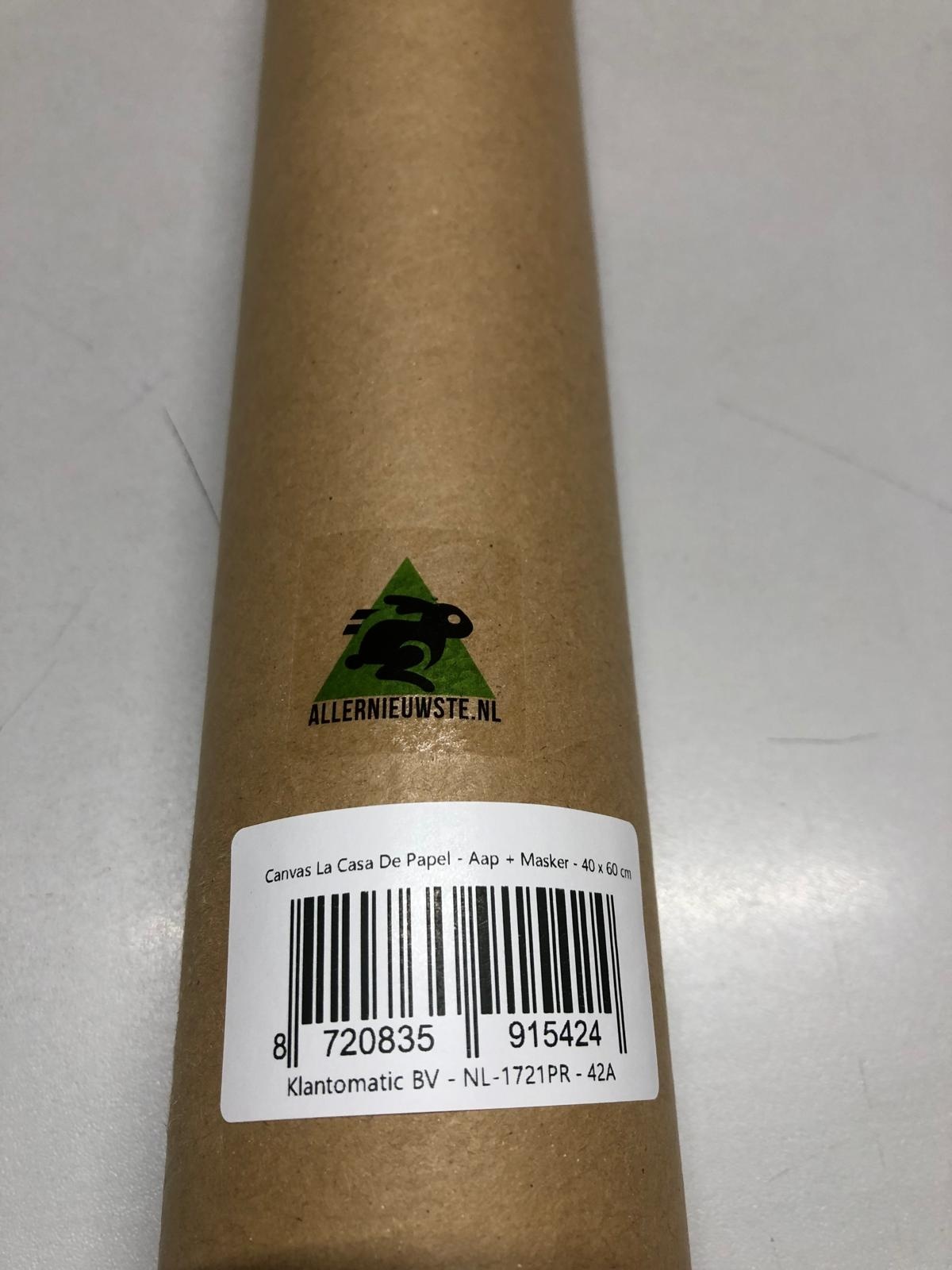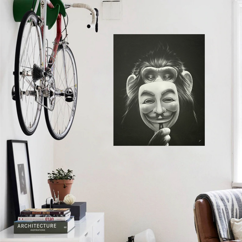 Allernieuwste.nl® Canvas Schilderij La Casa De Papel - Aap met Masker - Dieren - Kunst - Poster - 40 x 60 cm - Zwart Wit