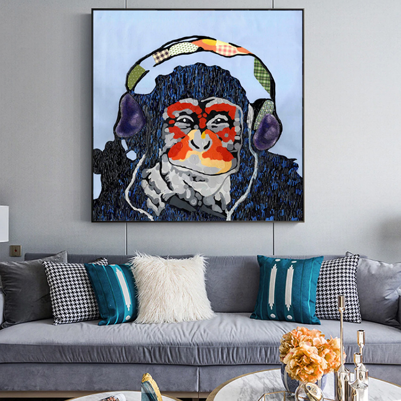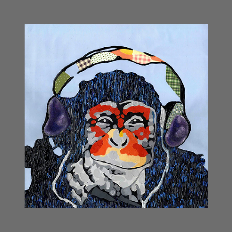 Canvas Schilderij * Luisterende Aap met Headphones * - Kunst aan je Muur - PopArt Modern - Kleur - 60 x 60 cm
