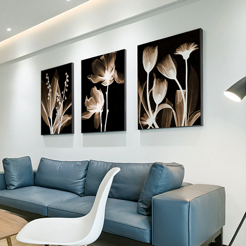Drie canvas die complementerend zijn en zorgen voor een aparte en relaxte atmosfeer in je kamer.