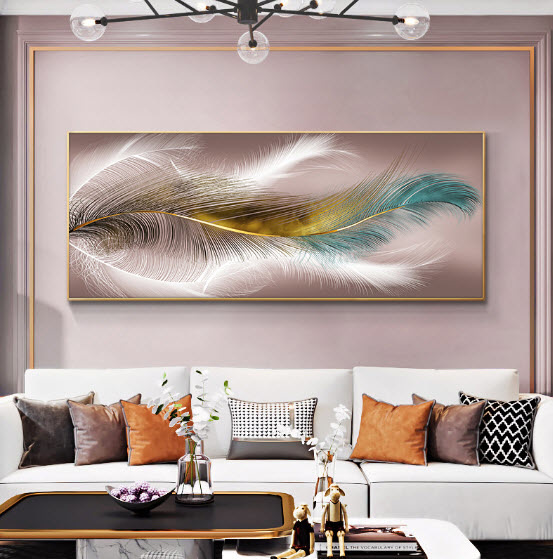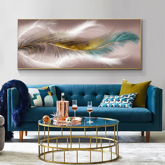 Canvas Schilderij * Luxe Veren * - Moderne Kunst aan je Muur - Kleur - 50 x 125 cm